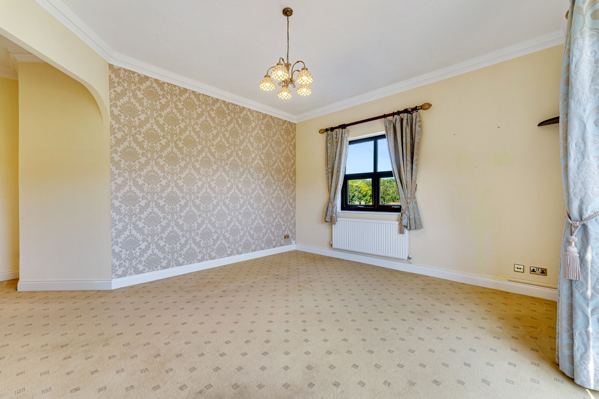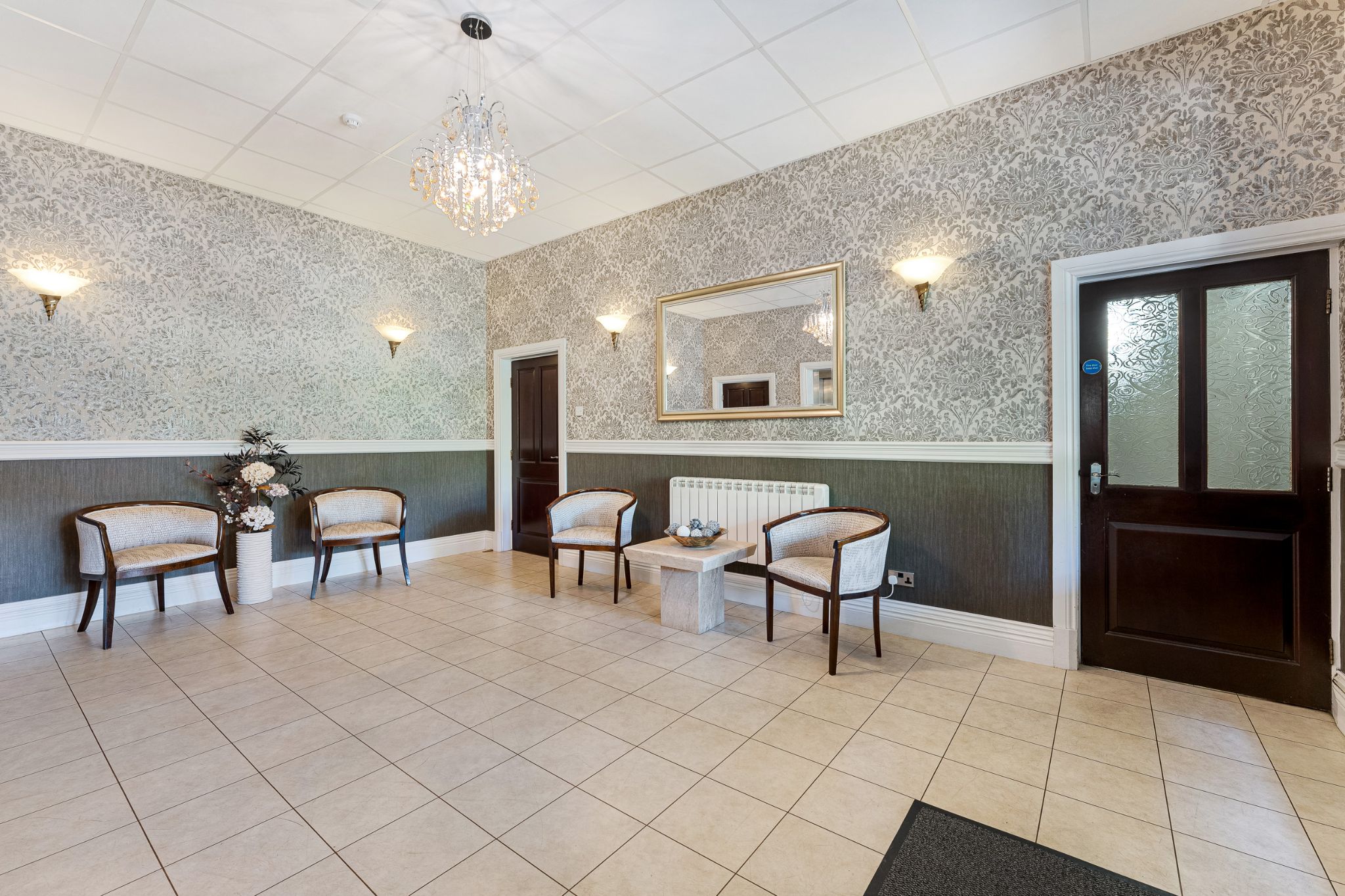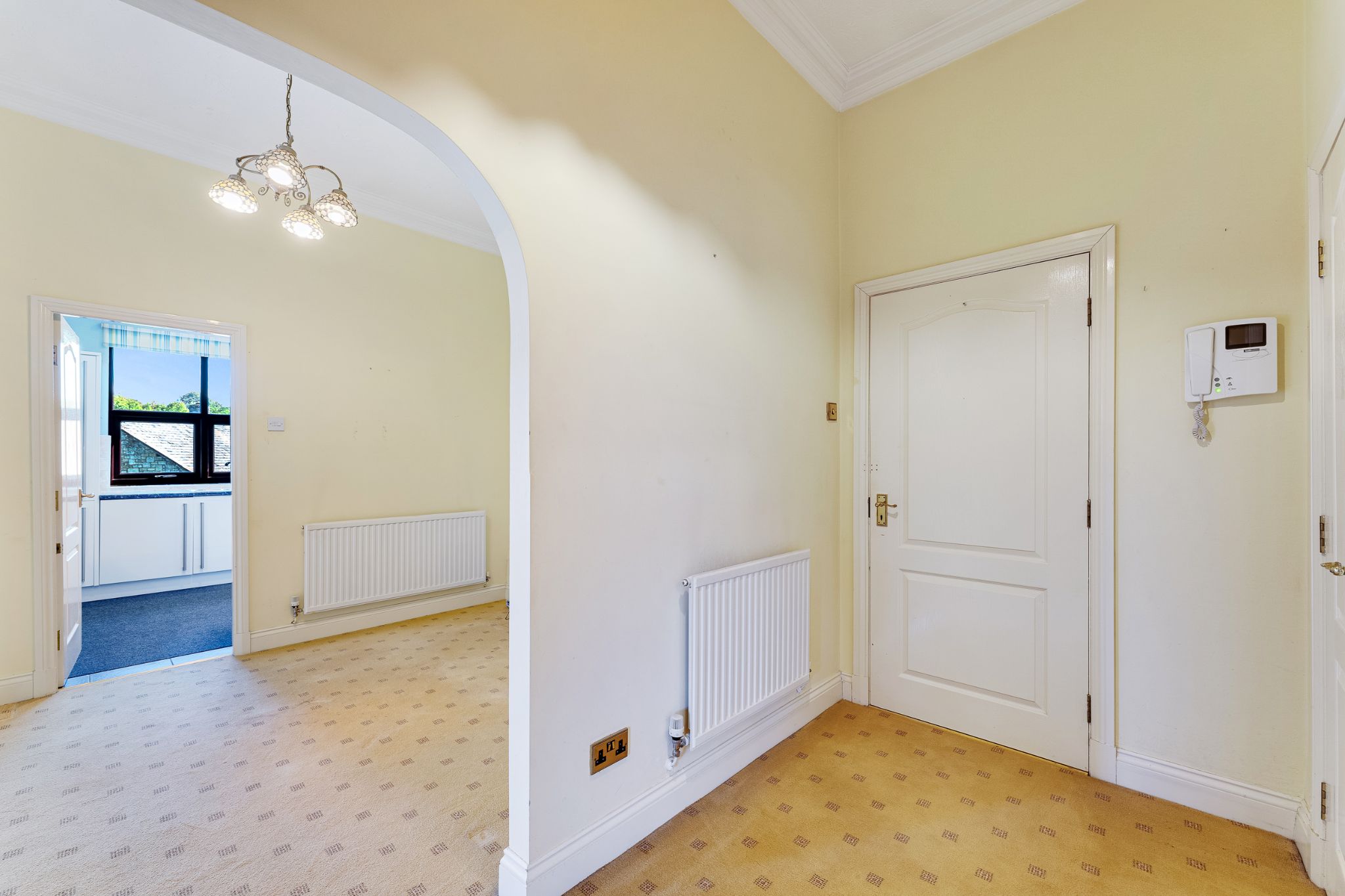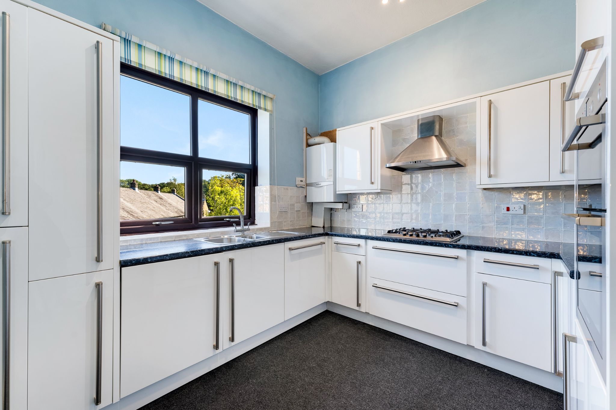Apartment 3B is located on the top floor, providing it with fantastic elevated views of the surrounding countryside. As you enter the spacious hall, you'll notice the space and light in this apartment, creating a tranquil atmosphere. Storage is often challenging with apartment living, but not here! A large closet to your left offers plenty of space to keep the hallway tidy, and an open archway leads through into the open-plan lounge-diner. Flooded with natural light thanks to the dual aspect including a Juliet balcony to let in a gentle summer breeze during warmer months, this room is flexible and offers ample space for your furniture and dining table. A feature electric fire sits within a contemporary fireplace to add a cosy focal point. The breakfast kitchen next door has white fitted base and wall units, with integrated Bosch oven, grill, 4-ring gas hob with extractor, dishwasher, fridge-freezer and washing machine. A breakfast bar sits to the side of the room for convenience if you're having a quick snack or coffee while you read the morning paper.
