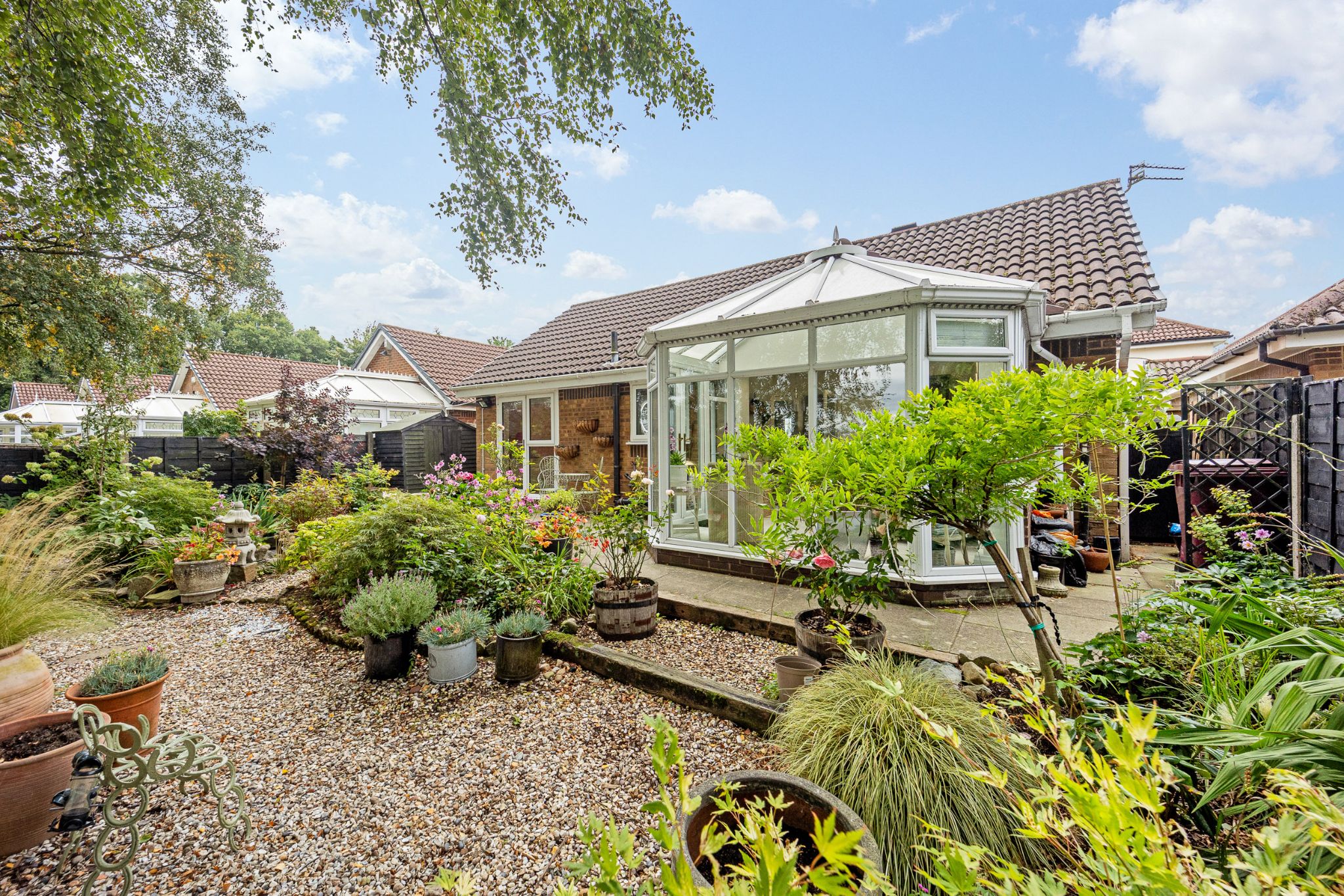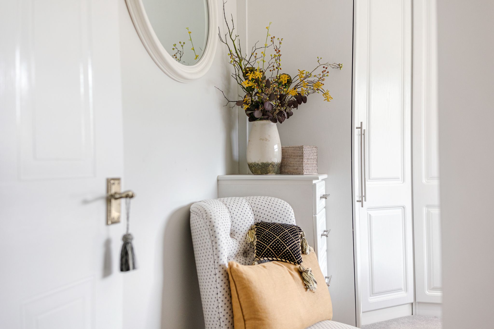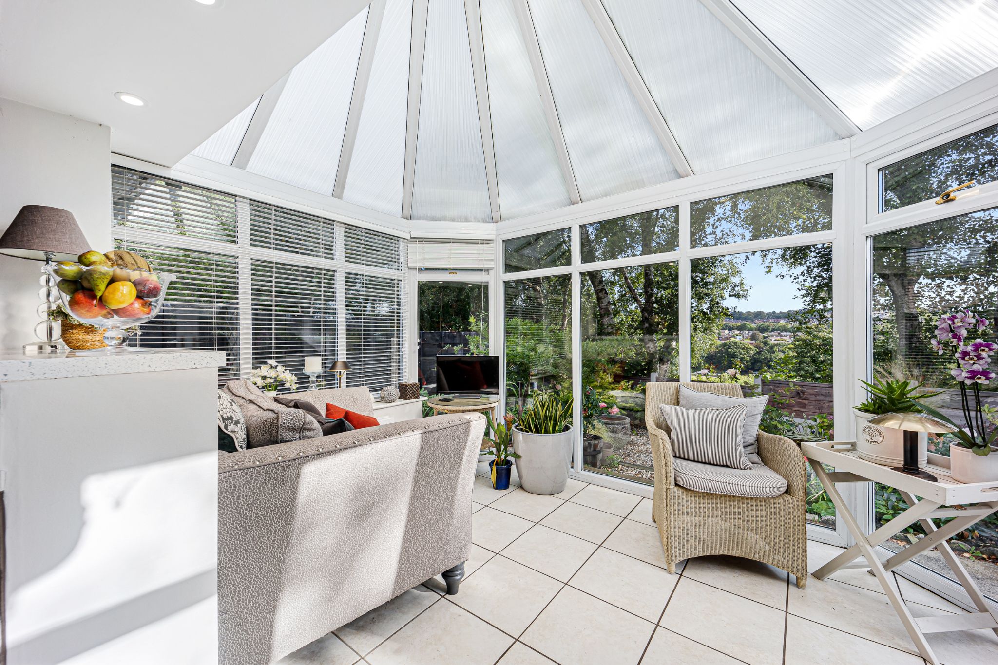 After parking up on the driveway, step through the composite front door into the entrance hallway. Fitted storage to the right offers plenty of space to neatly store coats and shoes, keeping the home neat and tidy. To the left is the welcoming lounge, a bright and calm room with a feature gas fireplace to add a cosy focal point. Continue through the glazed double doors into the kitchen-diner at the rear of the home. Grey base and wall units offer plenty of storage, and there's plumbing provisions for a cooker beneath the extractor hood, as well as space for your fridge-freezer, dishwasher and washing machine. An open archway leads through to the conservatory, where there's ample space for your dining table and furniture to allow you to enjoy watching the birds in the garden and the lovely views beyond.