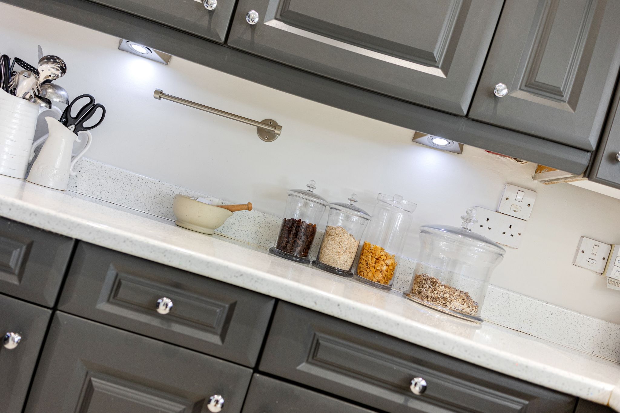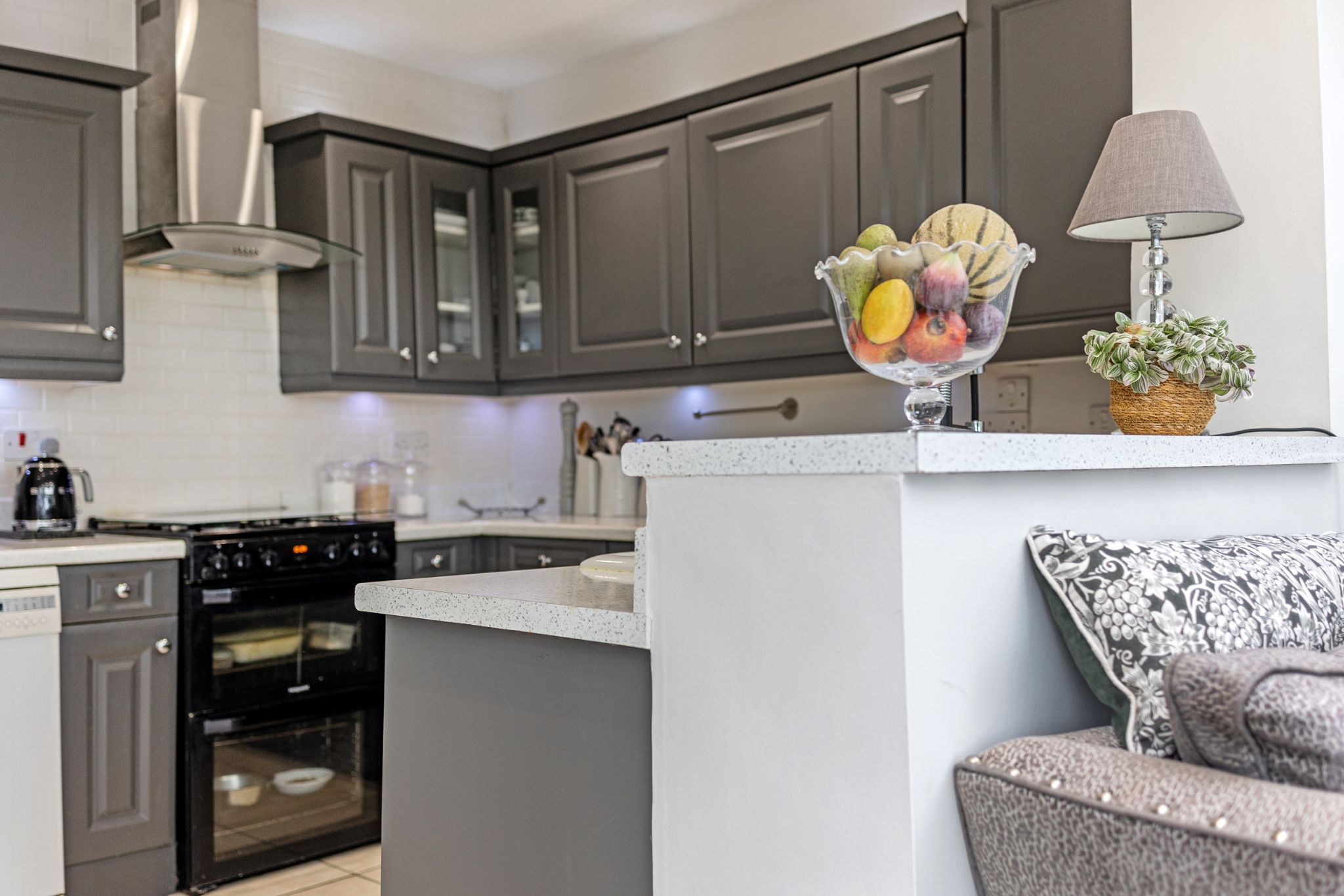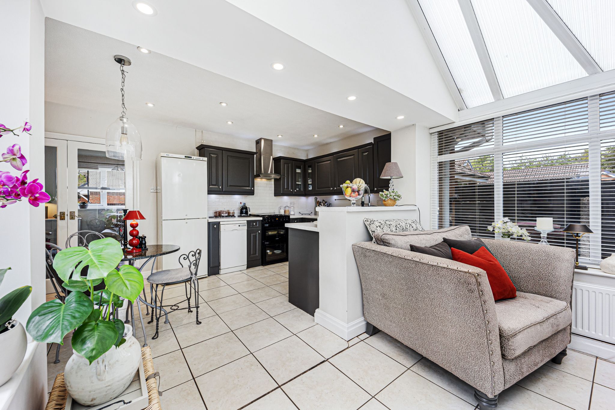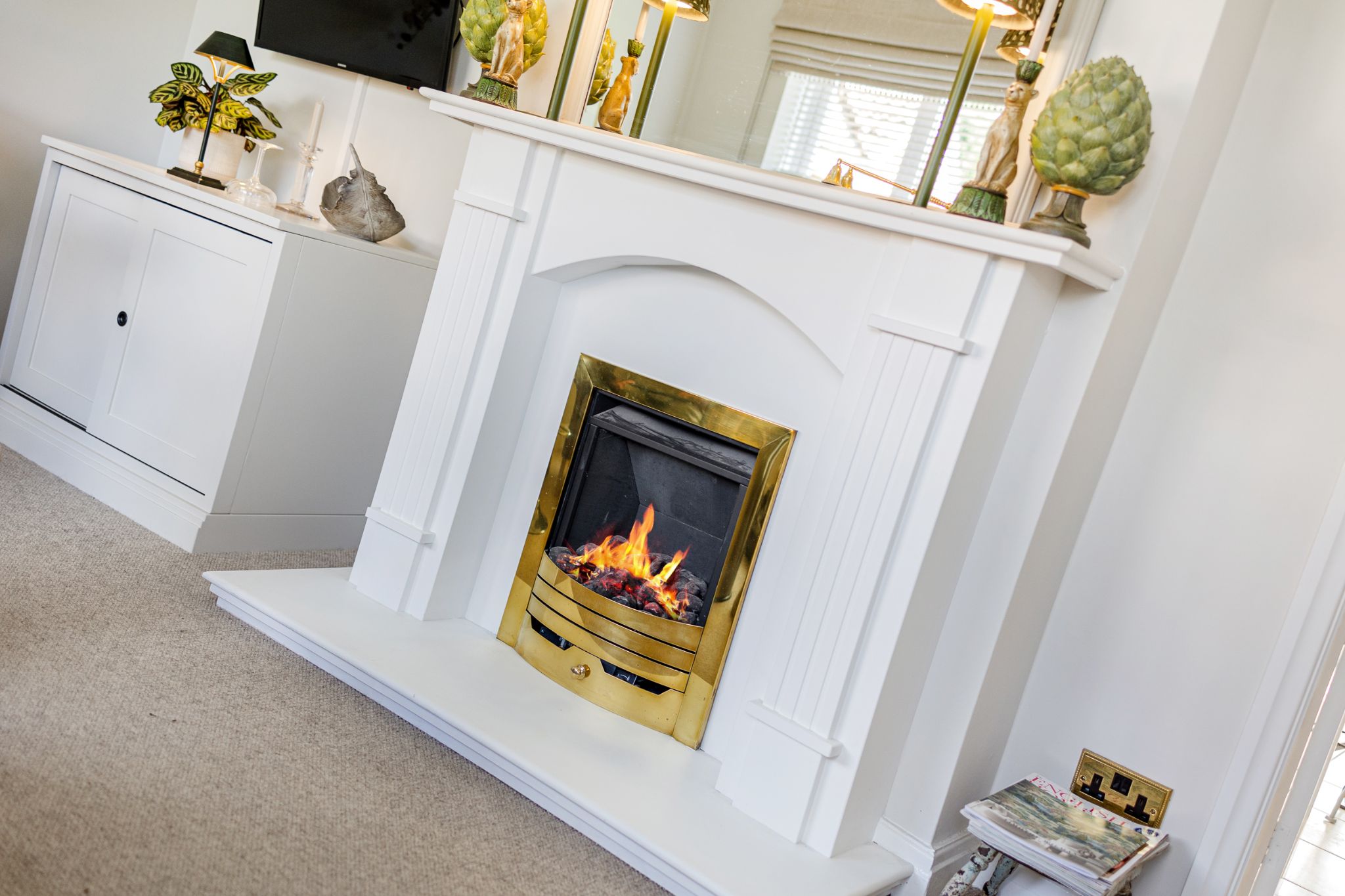 After parking up on the driveway, step through the composite front door into the entrance hallway. Fitted storage to the right offers plenty of space to neatly store coats and shoes, keeping the home neat and tidy. To the left is the welcoming lounge, a bright and calm room with a feature gas fireplace to add a cosy focal point. Continue through the glazed double doors into the kitchen-diner at the rear of the home. Grey base and wall units offer plenty of storage, and there's plumbing provisions for a cooker beneath the extractor hood, as well as space for your fridge-freezer, dishwasher and washing machine. An open archway leads through to the conservatory, where there's ample space for your dining table and furniture to allow you to enjoy watching the birds in the garden and the lovely views beyond.