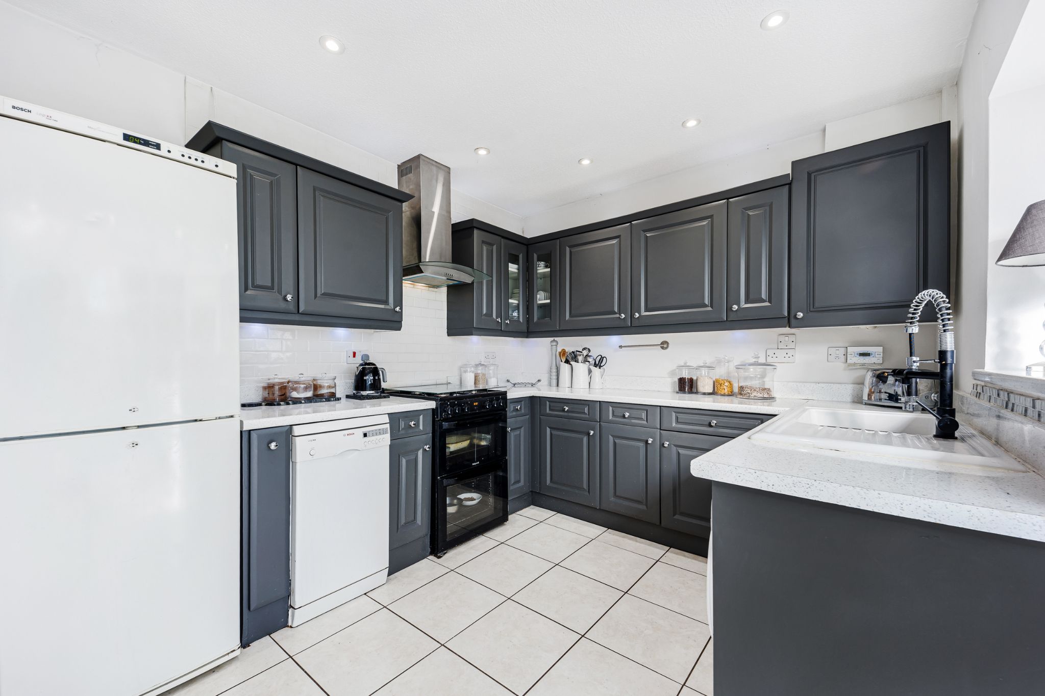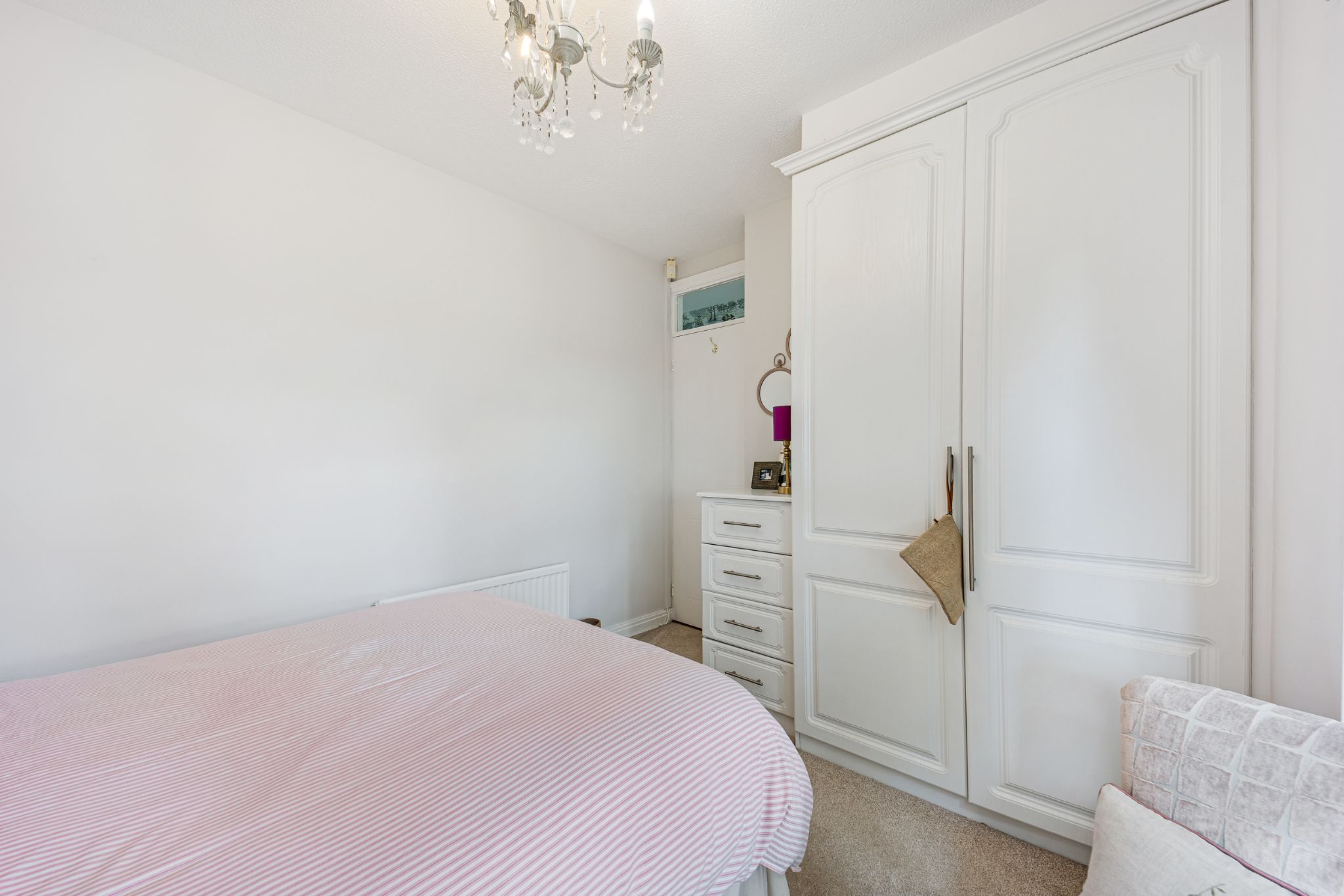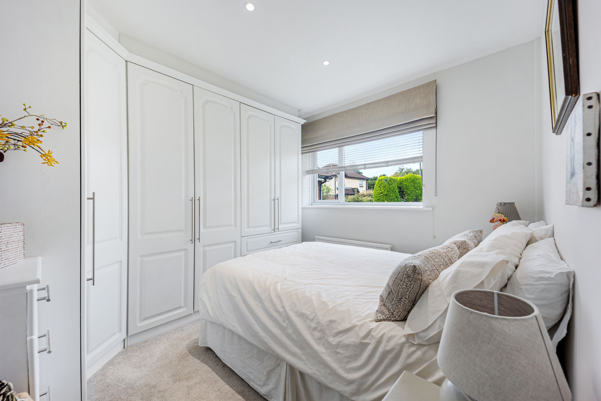 Retrace your steps through the hallway to find the two double bedrooms and shower room. The master sits to the front of the home, with contemporary white fitted furniture and leafy views. Bedroom two is also a good double size with white fitted furniture, and French doors leading out to the rear garden. Completing the internal accommodation, the shower room is part tiled in sleek white marbled porcelain tiles, with a walk-in shower, W.C., vanity basin, traditional chrome towel radiator and an LED mirror.