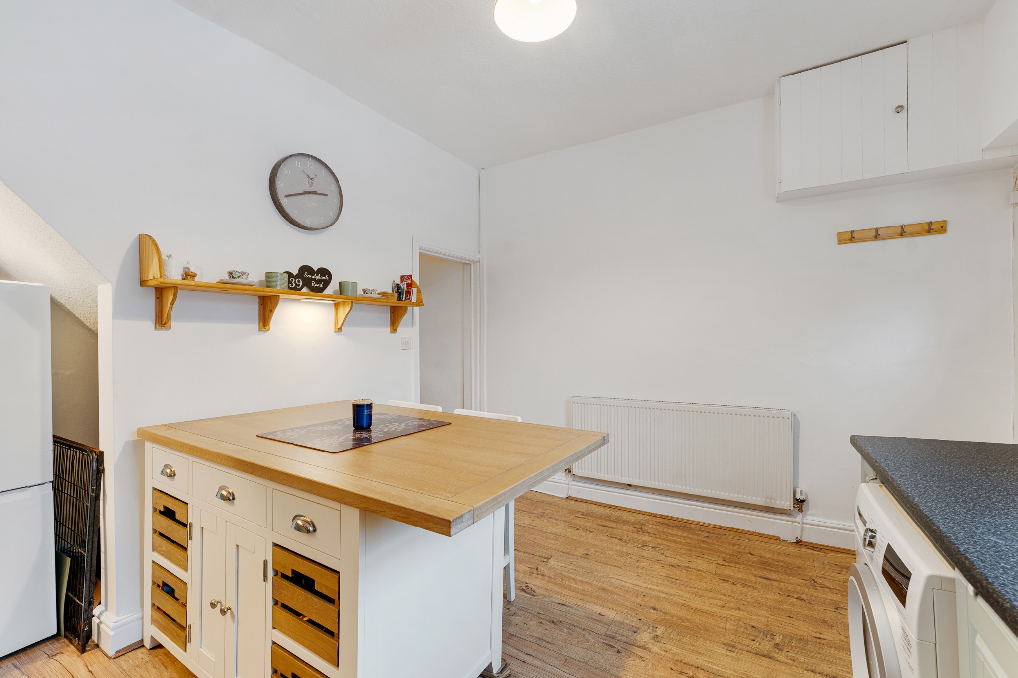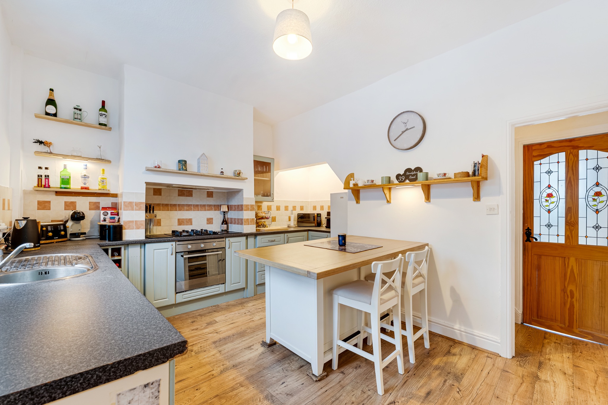 From the front drive the home welcomes you inside to the kitchen diner, with a traditional style that complements the character of the home. Integrated appliances here sit within units on two sides of the kitchen, affording plenty of space in the middle for dining, and include a stainless steel sink with drainer and mixer tap, electric oven, four plate gas hob and hidden extractor within the chimney breast.