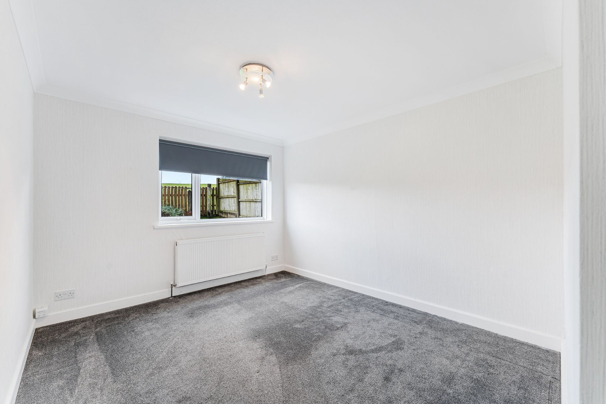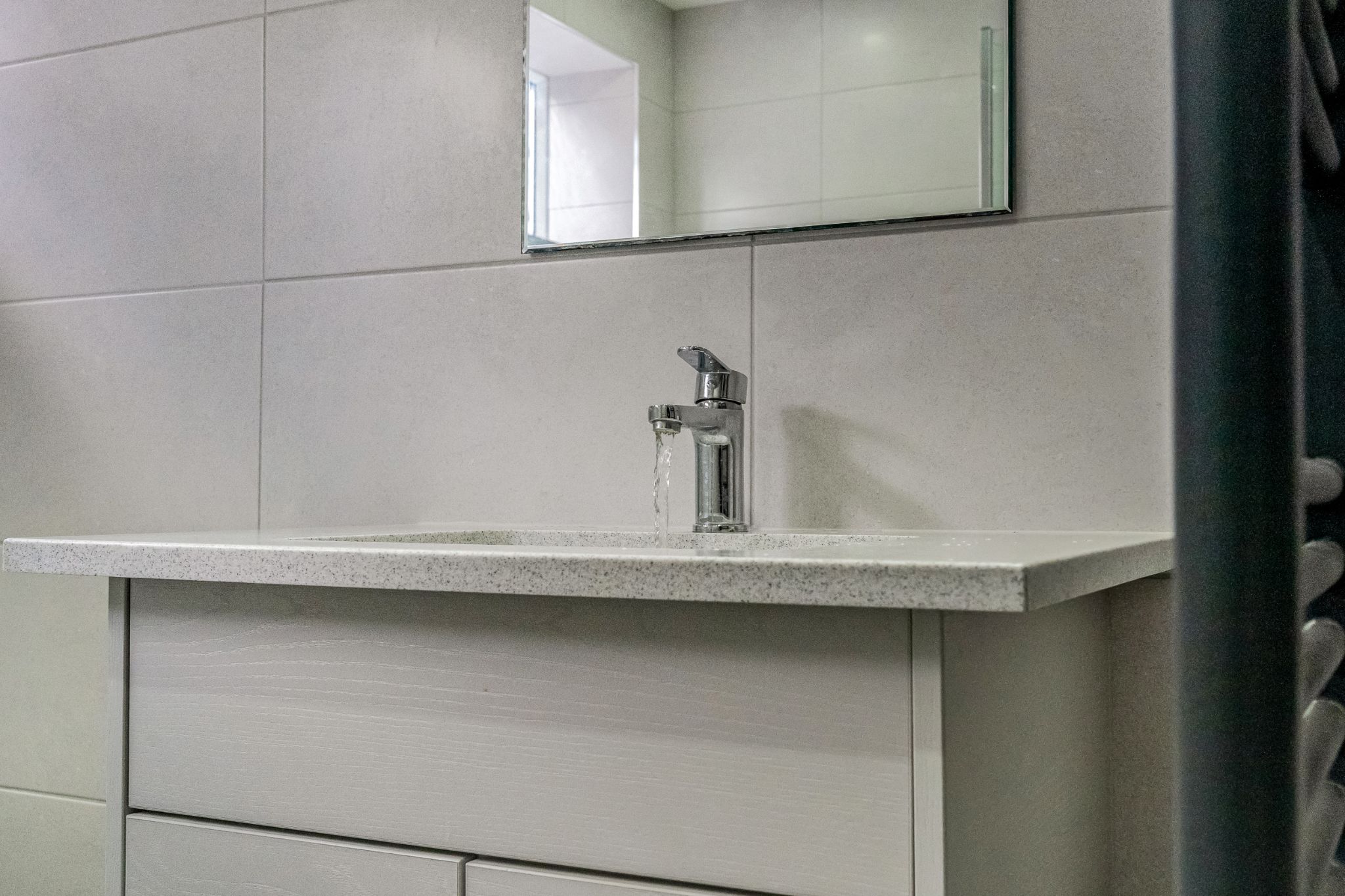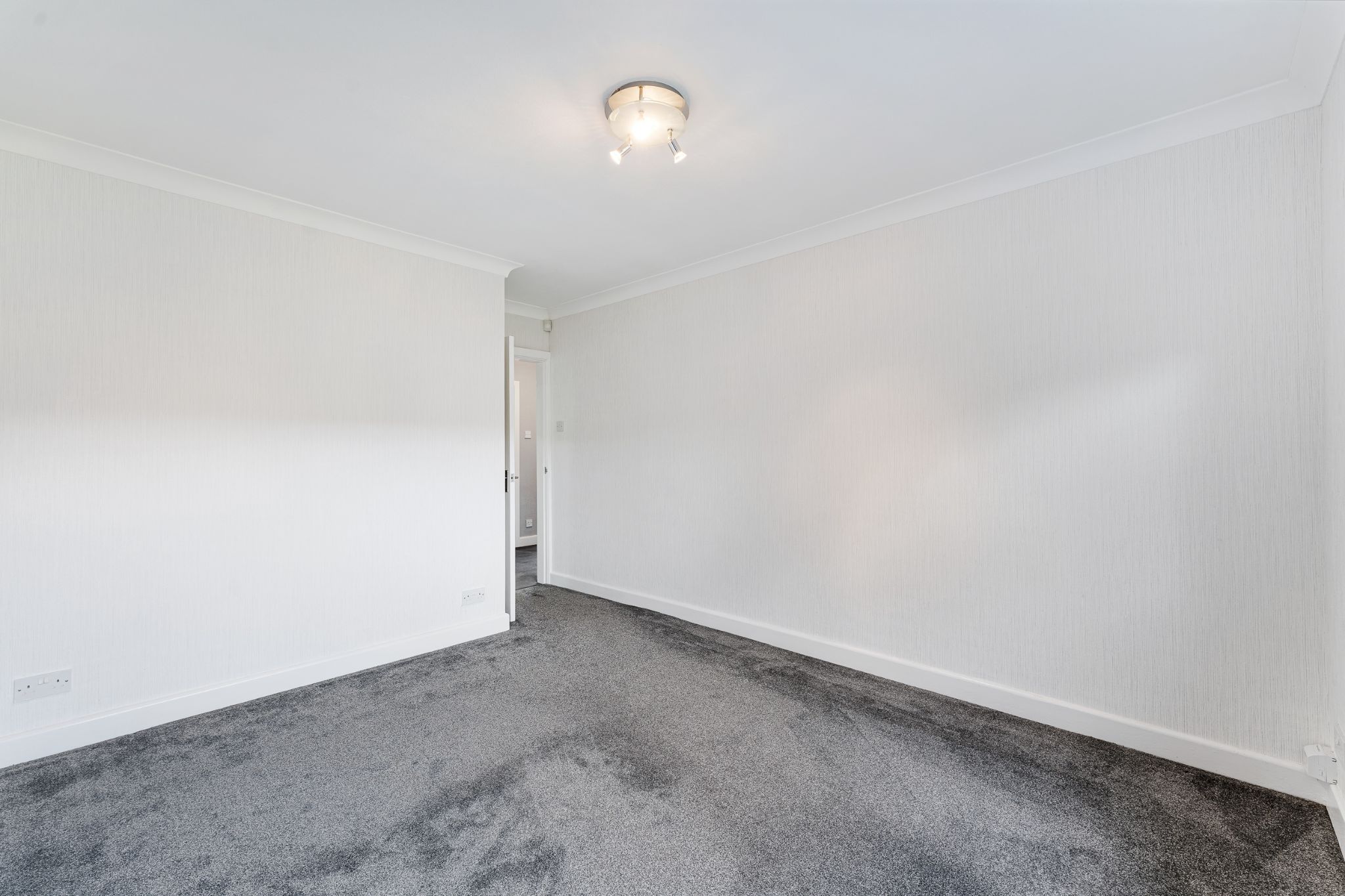 Follow the hallway to discover three bedrooms and the family bathroom, along with two generous linen closets. There is also access to the large loft, which has boarding for storage and offers scope to be converted into living accommodation. The master bedroom is a spacious double with sleek white fitted furniture. Bedroom two is also a good double size, with leafy views over the rear garden, while bedroom three is a versatile space—ideal as a guest room, home office or snug lounge—with patio doors opening directly onto the garden. Completing the accommodation, the 4-piece bathroom is fully tiled in soft white and grey tones and features a bathtub, large walk-in rainfall shower, vanity basin, W.C., and heated towel rail.
