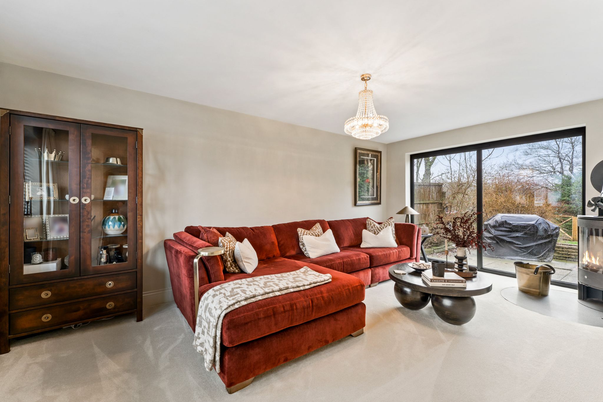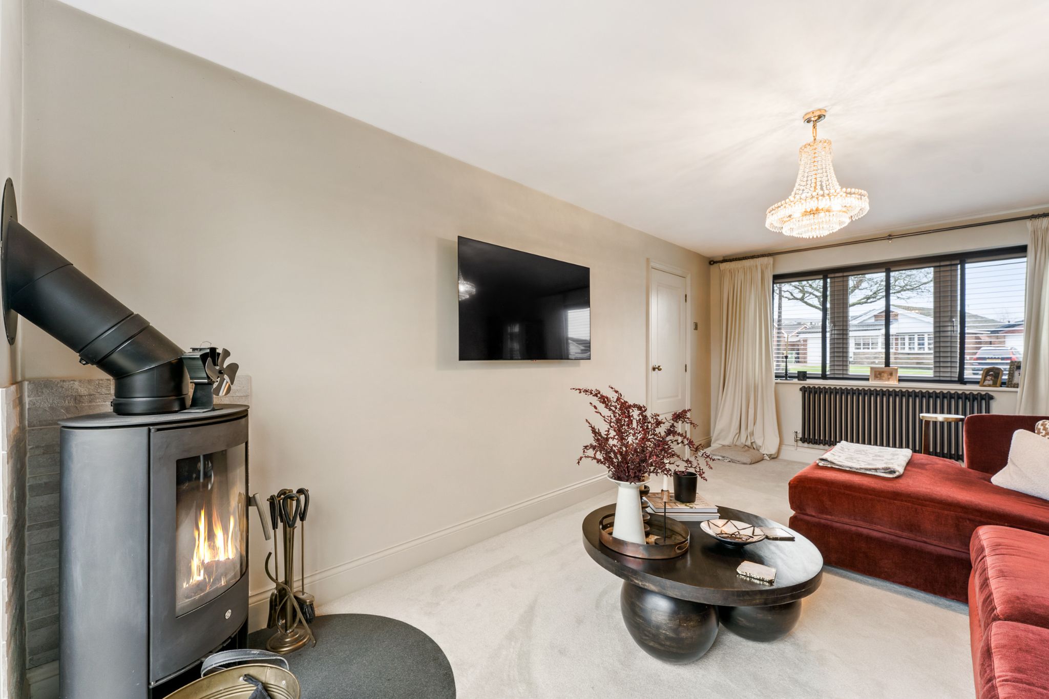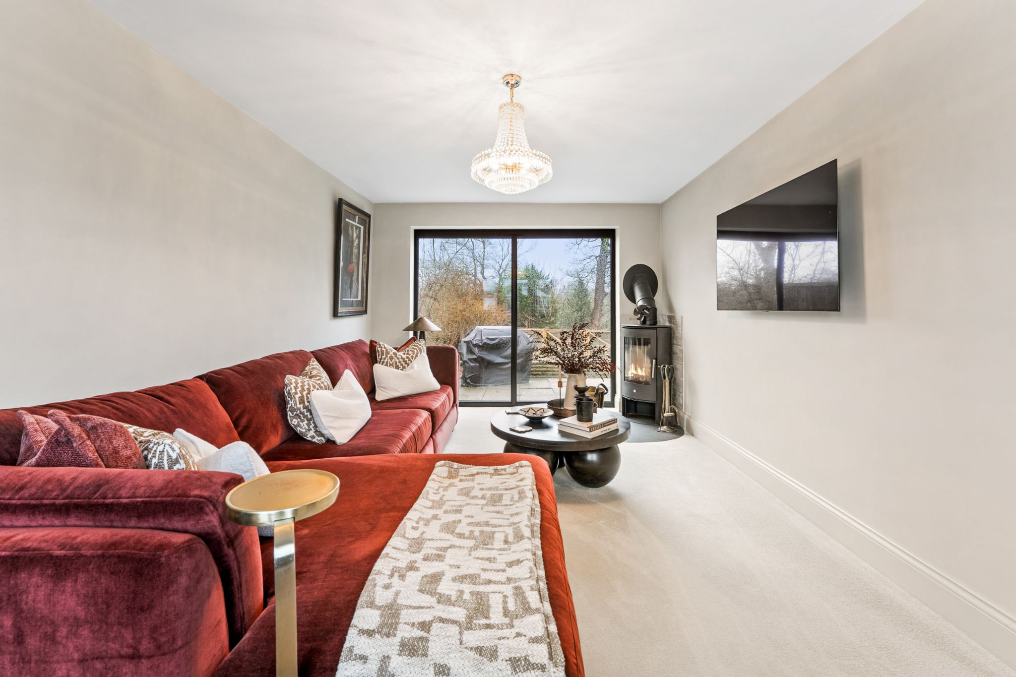 Enter into the spacious entrance hallway featuring understairs storage perfect for your coats and shoes and with engineered oak flooring that flows throughout the ground floor. To your left, is the beautifully appointed lounge that enjoys a dual aspect windows overlooking both the front and rear gardens, while a log burner creates a warm and inviting focal point. Positioned opposite is a versatile second reception room, currently used as a snug but equally suited to use as a home office, playroom or additional sitting room. Continuing through the hallway, you’ll find the impressive extended kitchen-diner — a superb family and entertaining space. Large bi-folding doors open seamlessly onto the rear garden, flooding the room with natural light. The kitchen is fitted with stylish navy base units complemented by marble quartz worktops, and benefits from an island with extra storage, a breakfast bar and plenty of space for a dining table. Integrated appliances include a dishwasher, under counter fridge, extractor hood, wine/drinks fridge, and an instant hot water mixer tap. Just off the kitchen is a generous utility room, converted from part of the garage and fit with stone wall and base units, a stainless steel sink with mixer tap, space for a large fridge freezer, and plumbing for a washing machine and dryer. The recently installed boiler is also housed here. A convenient downstairs WC completes the ground floor, convenient for guests.