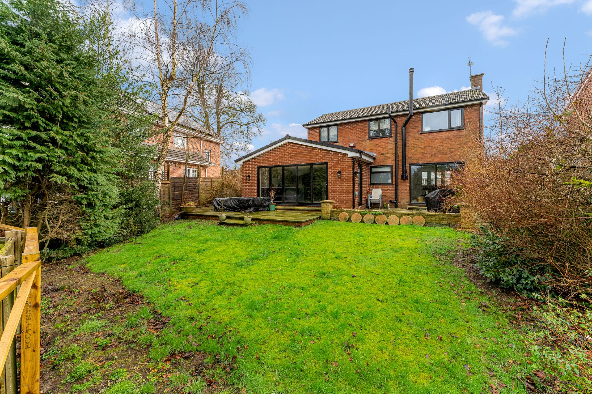 Into the rear garden where your instantly greeted by a large flagged patio area, the perfect spot to set up your garden furniture and BBQ, there is a generous sized lawn for the kids to play. A side gate gives you access to the front lawn, large driveway and garage.