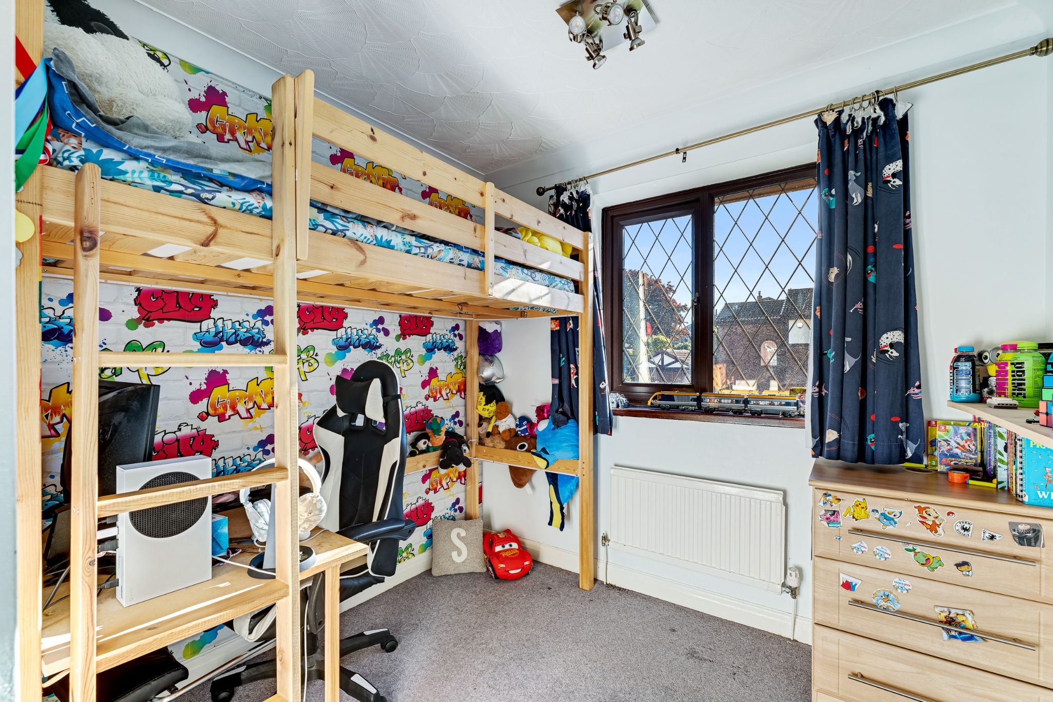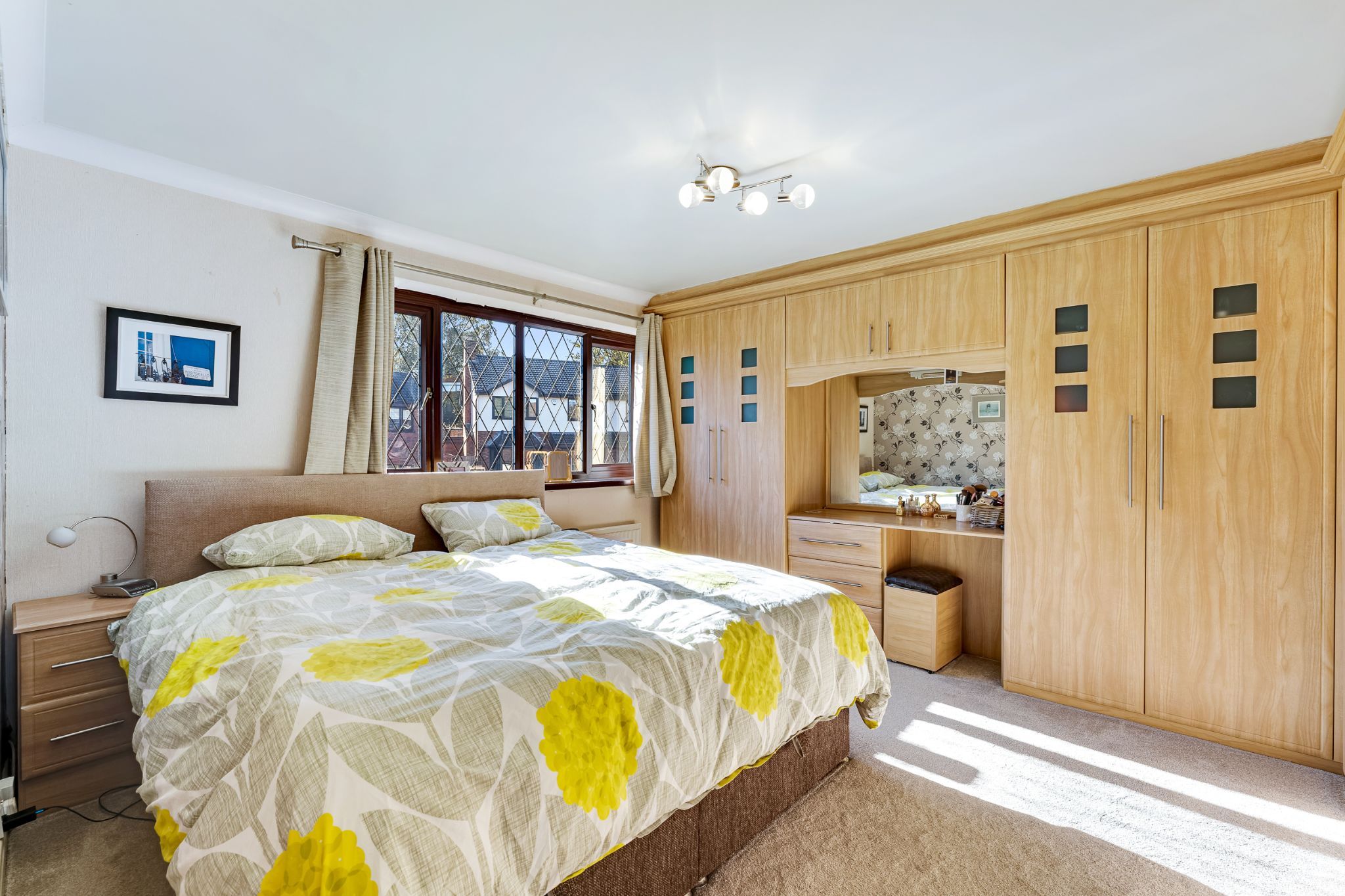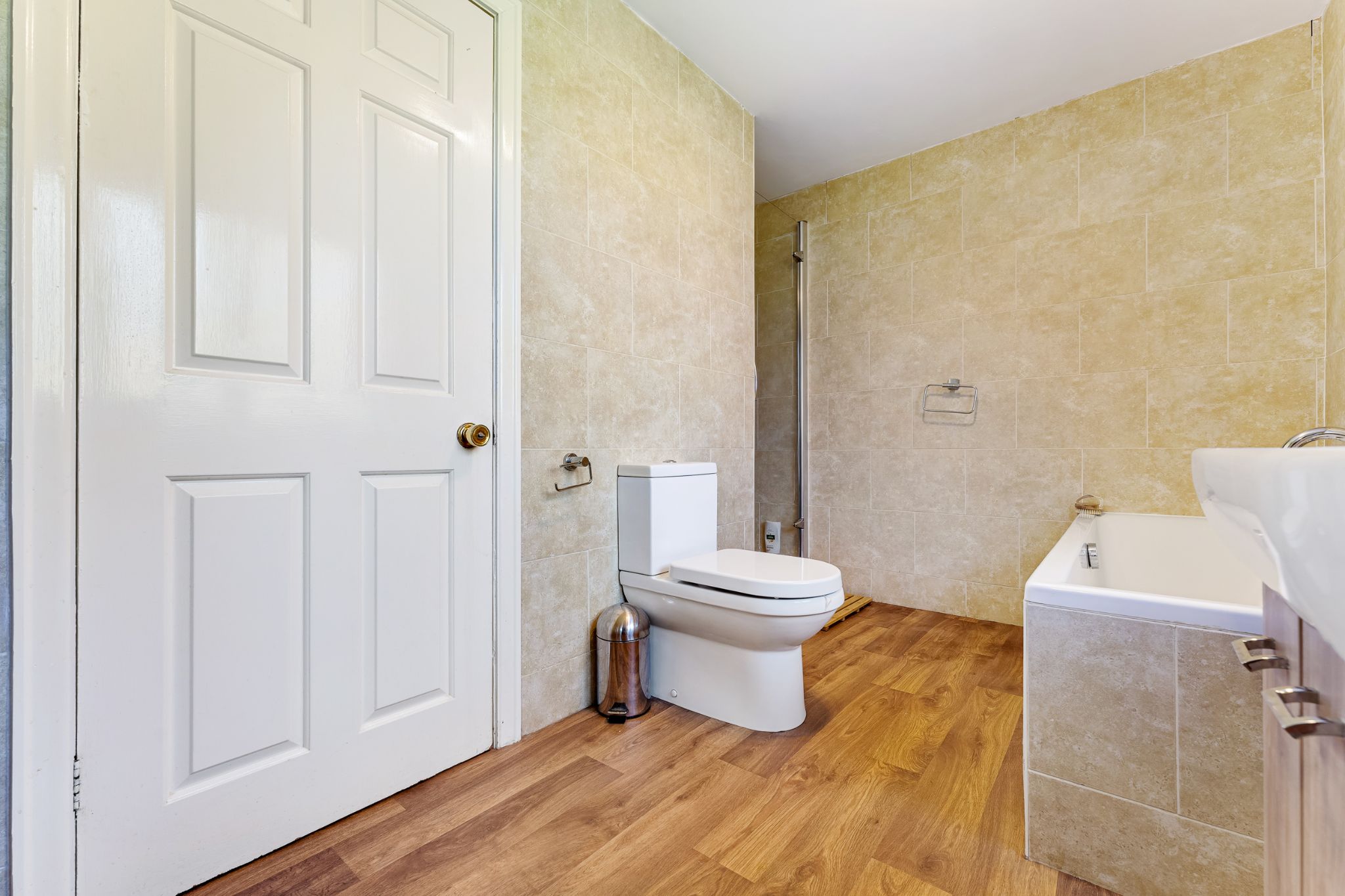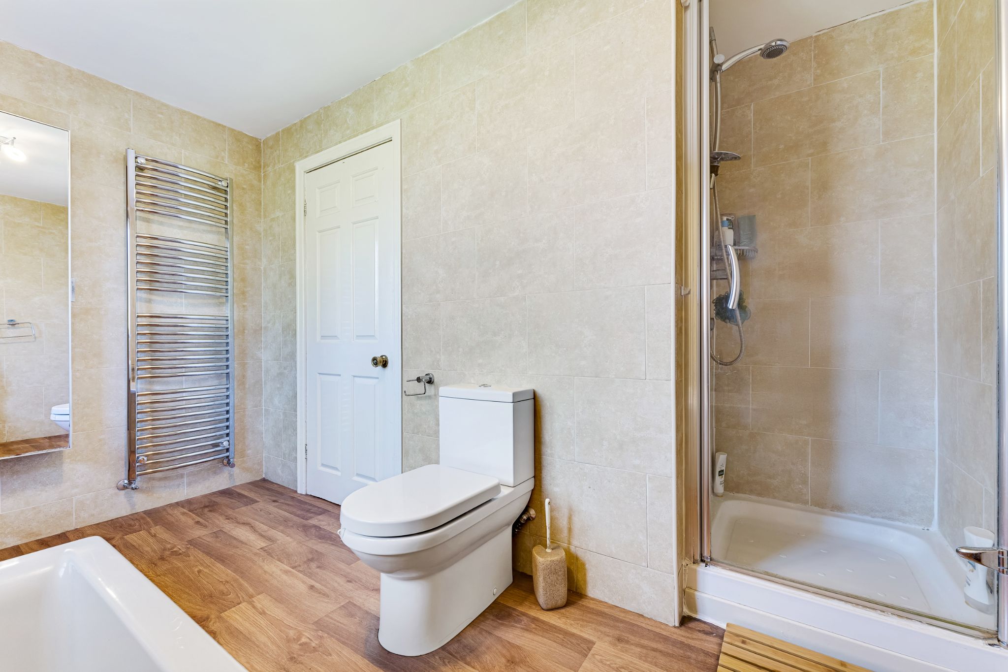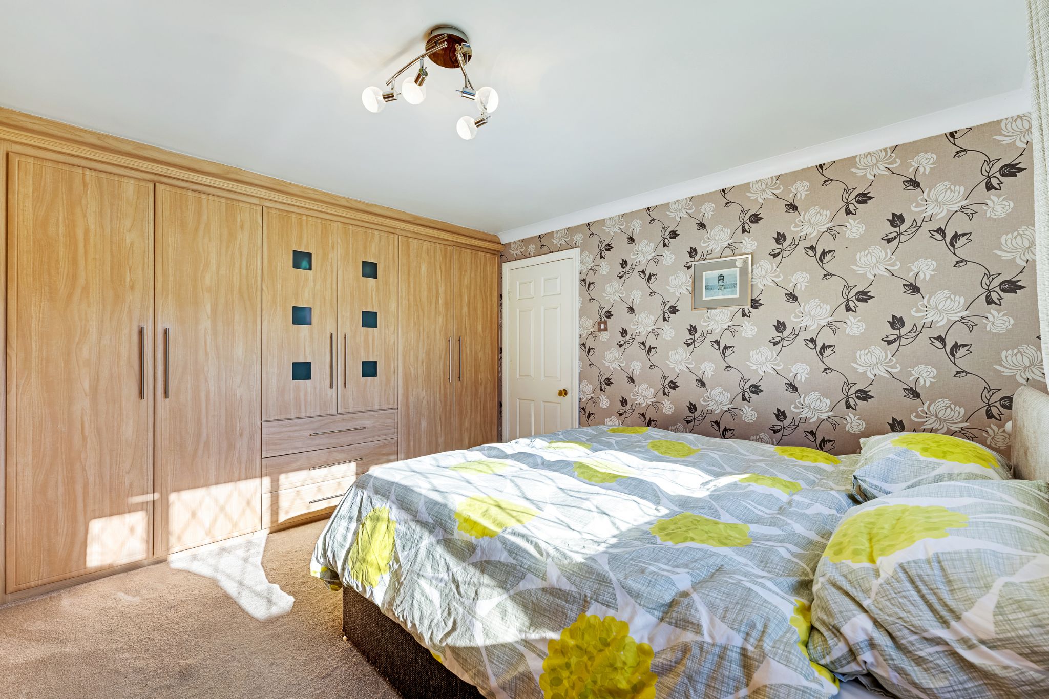 Upstairs, you'll find three well-sized bedrooms with newly fitted plush carpets, and a spacious 4-piece family bathroom, as well as access to the part-boarded loft via pull down ladders. The master bedroom is a great size with fitted furniture and ample space for a king sized bed. Bedroom two sits to the rear of the home, also offering a double size space with fitted furniture and views over the rear garden. The third bedroom is a spacious single size. Completing the first floor, the family bathroom is fully tiled in soft neutral tones with a bathtub, separate walk-in shower, W.C., vanity basin and chrome heated towel rail.