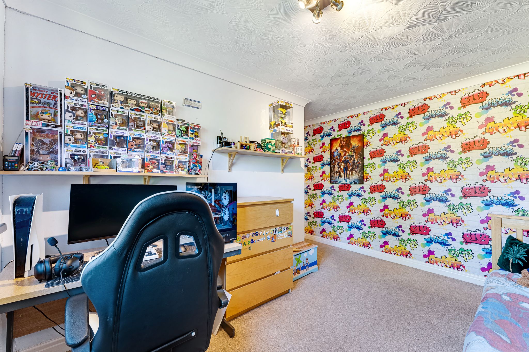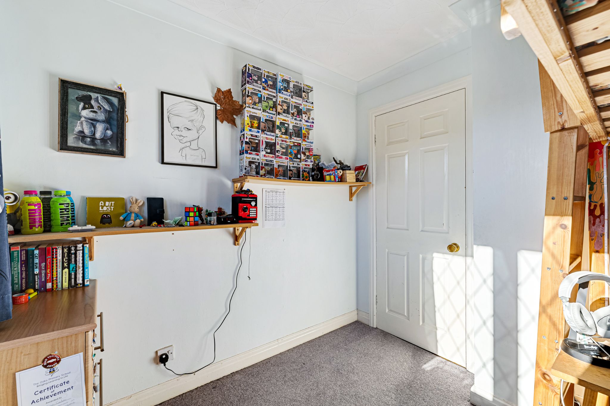 To the rear of the home is an impressive west-facing garden which enjoys the sun all afternoon and evening - perfect for summer BBQs and spending time with friends and family. Gravelled patio areas provide space for your outdoor furniture, and a pathway leads around the spacious lawn to a patio in the rear corner so you can soak up every last ray of sunshine. A smart shed runs the length of the home down one side, offering plenty of storage, and to the other side of the home is a path with secure pedestrian gate leading to the driveway. The front garden has a well-maintained lawn and shrubs, and the drive offers parking for 3-4 cars with ease.