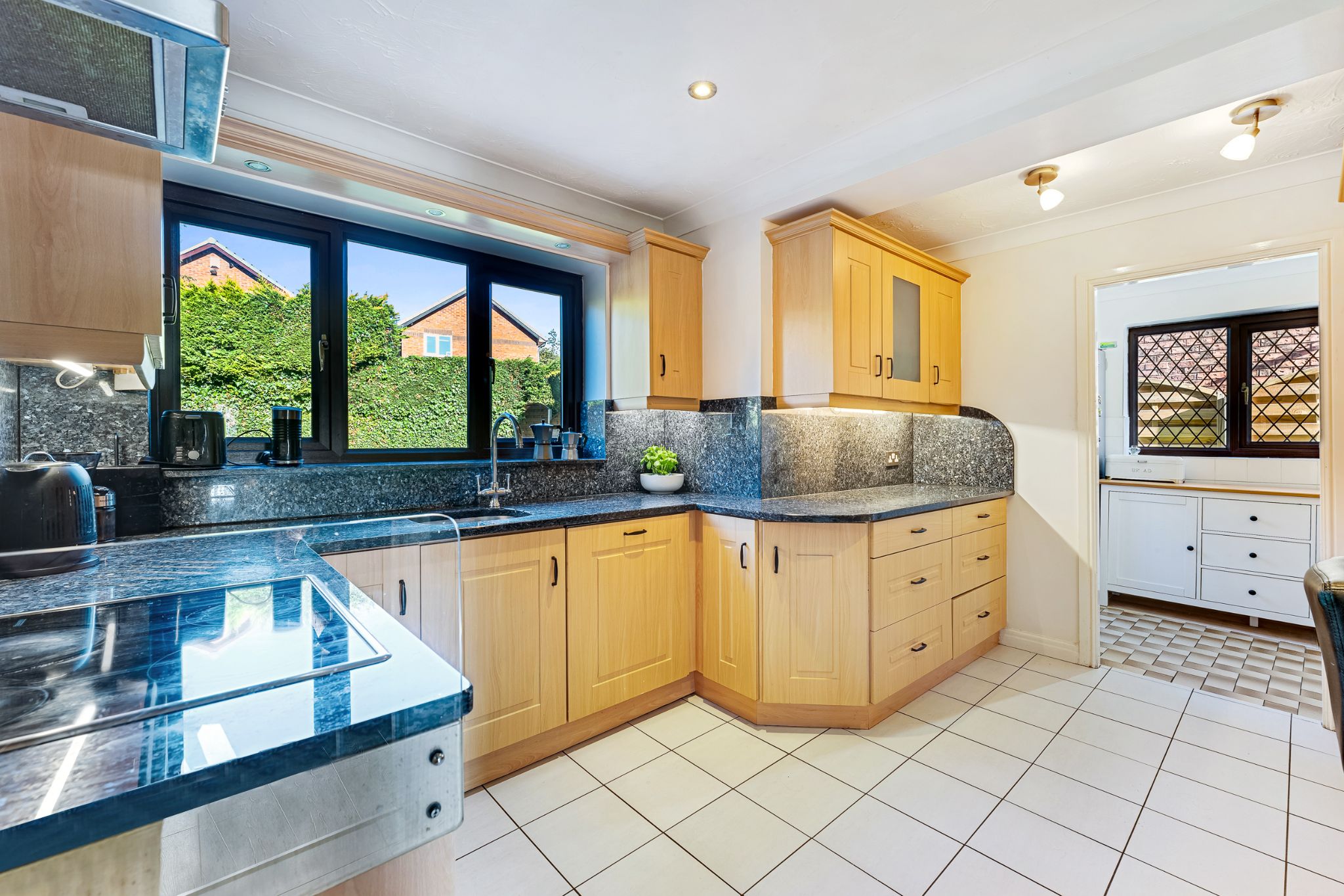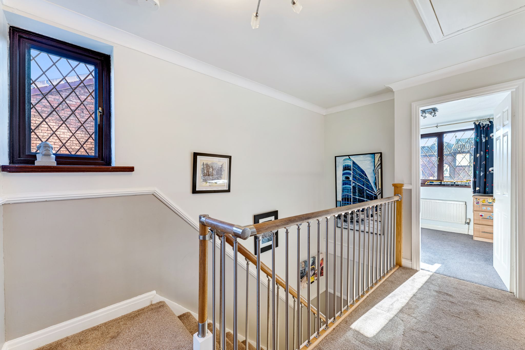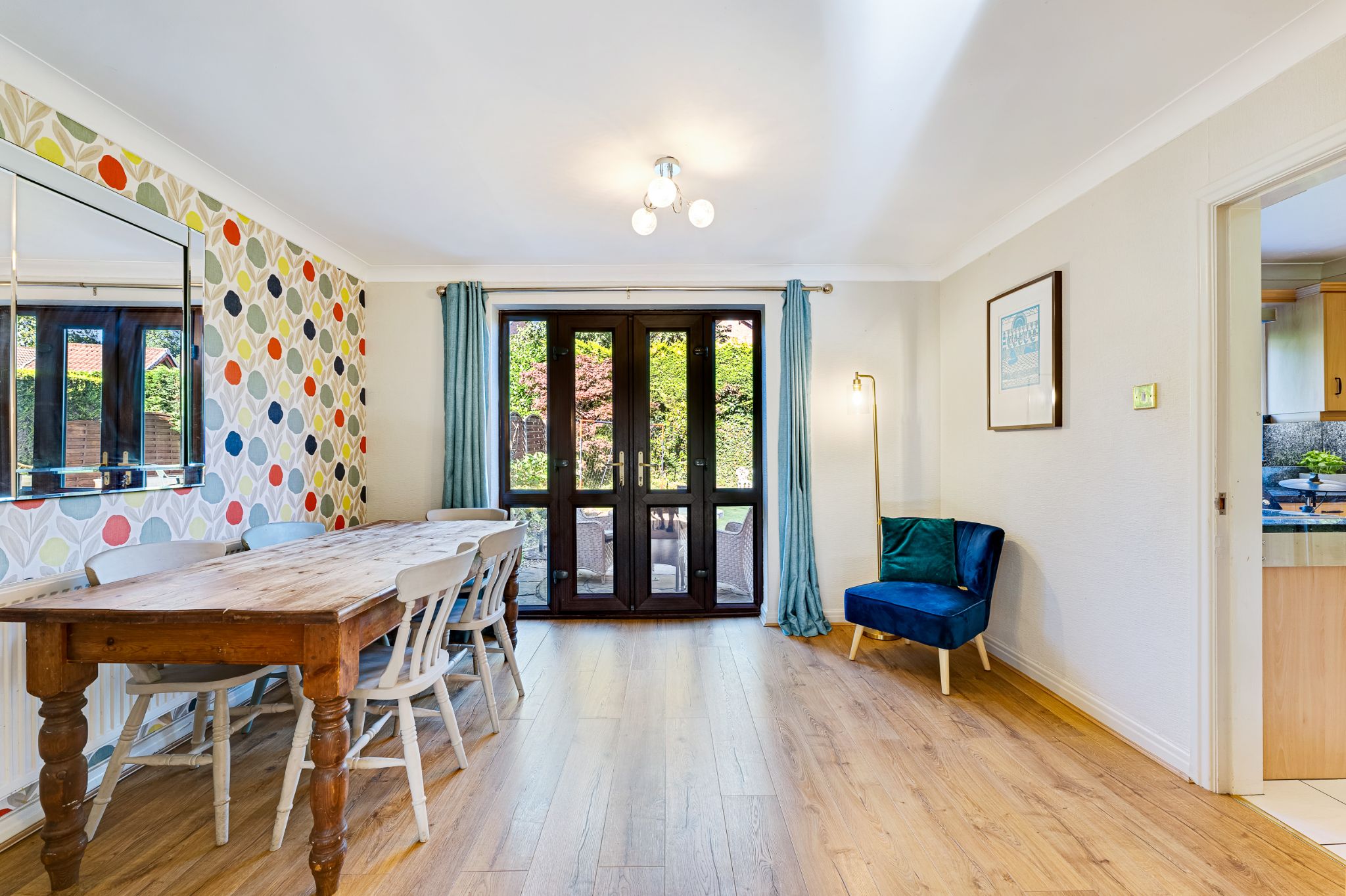 After parking on the driveway, step through the front door beneath the storm porch and into the spacious entrance hallway. You'll immediately notice the bright and calm atmosphere in this home, with lots of natural light and space for busy families. A convenient guest W.C. sits to the right, fully tiled with a vanity basin. To your left is the lounge, newly carpeted with a large bay window and a feature electric fire adding a warm focal point for cosy evenings in with the family. Double glazed doors to the dining room offer the flexibility of opening the space up for hosting family parties, and the dining room is equally spacious with French doors leading to the rear garden. Continue through into the kitchen, which has wood-effect base and wall units with integrated appliances including oven, fridge-freezer, induction hob with extractor and a newly fitted Neff dishwasher. Tucked behind the kitchen is a handy utility space, with a composite stable door leading to the rear garden. The garage has been half-converted to offer a brilliant home office space, which is large enough to be used as a ground floor bedroom if required, or perhaps a home gym or playroom for the children! There's also internal access to the garage, which has plumbing provisions for your washing machine and tumble dryer, as well as additional storage. A brand new boiler has been installed in the past few weeks giving you peace of mind.