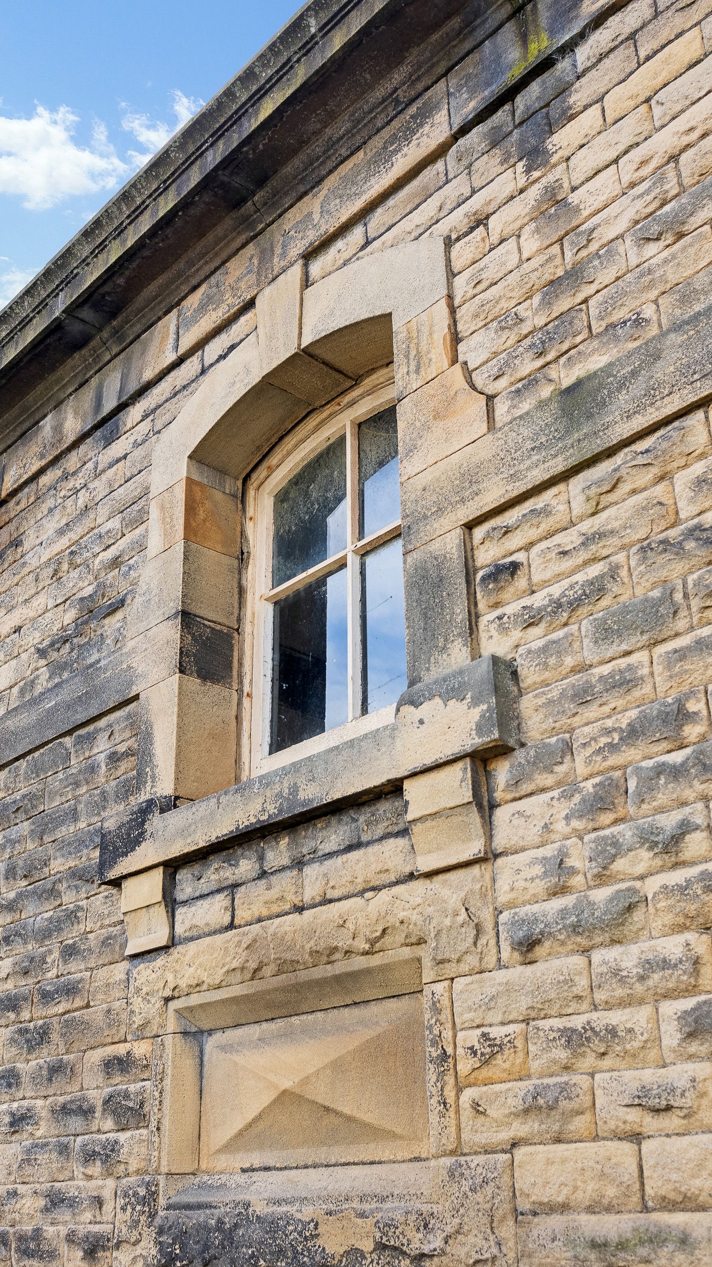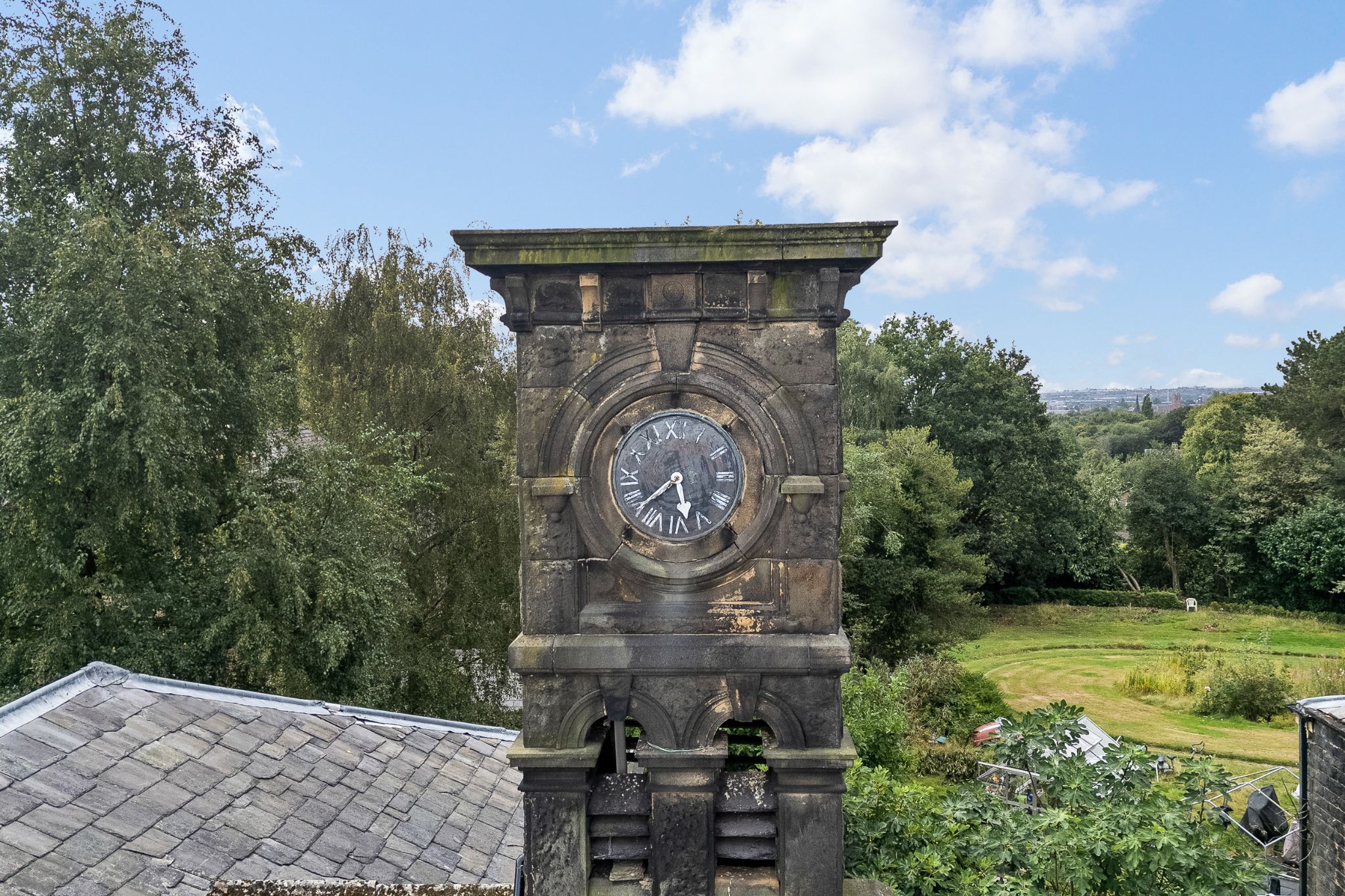 Externally, the property’s striking presence is defined by the prominent sandstone clock tower — said to have been positioned so Sir Holden could see it both from his home and his office at the mill. This charming detail, preserved in local memory, captures the romance of the site’s history. Carved sandstone lozenges adorn the stonework, at a convenient height to be replaced with windows to increase natural light within the property – particularly ideal if you’re considering a second storey internally.