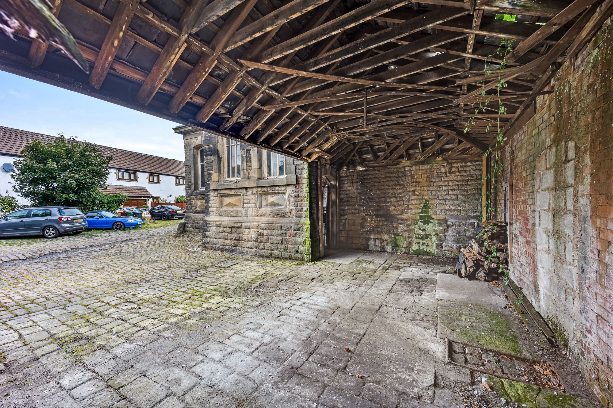 Nestled within a charming, enclosed cobbled courtyard, and lying within the Eagley Bank Conservation Area, the property is steeped in atmosphere. The sandstone and slate-built Stables sit beneath the Clock Tower, with the Coach House sits alongside and the Tack Room behind it. Together offer over 1600 sq.ft. of ground floor internal space and present an extraordinary canvas for conversion with soaring interiors and the potential to create a partial mezzanine or a dramatic two-storey living space. Internally, the Stables are particularly breath-taking - a lofty chamber crowned with an open-trussed ceiling, carved stone corbels and ornate turned timberwork of rare craftsmanship, all speaking to the respect and grandeur once afforded to the estate’s horses. Substantial York stone flags line the floor underfoot, adding to the character and splendour of this property.