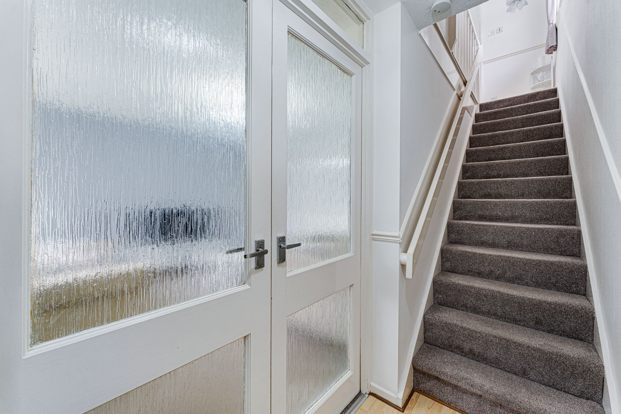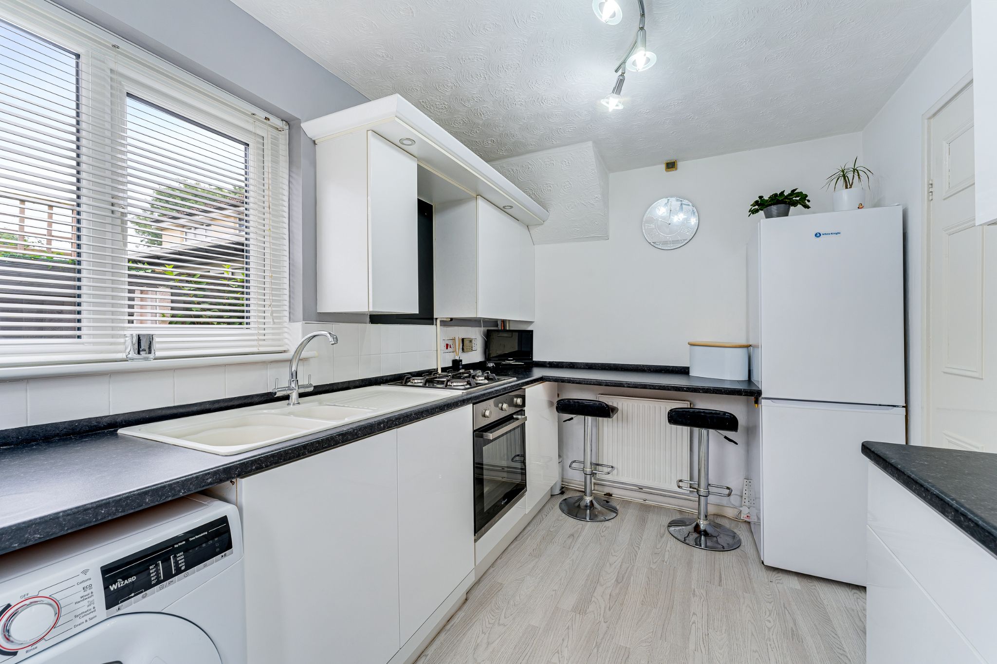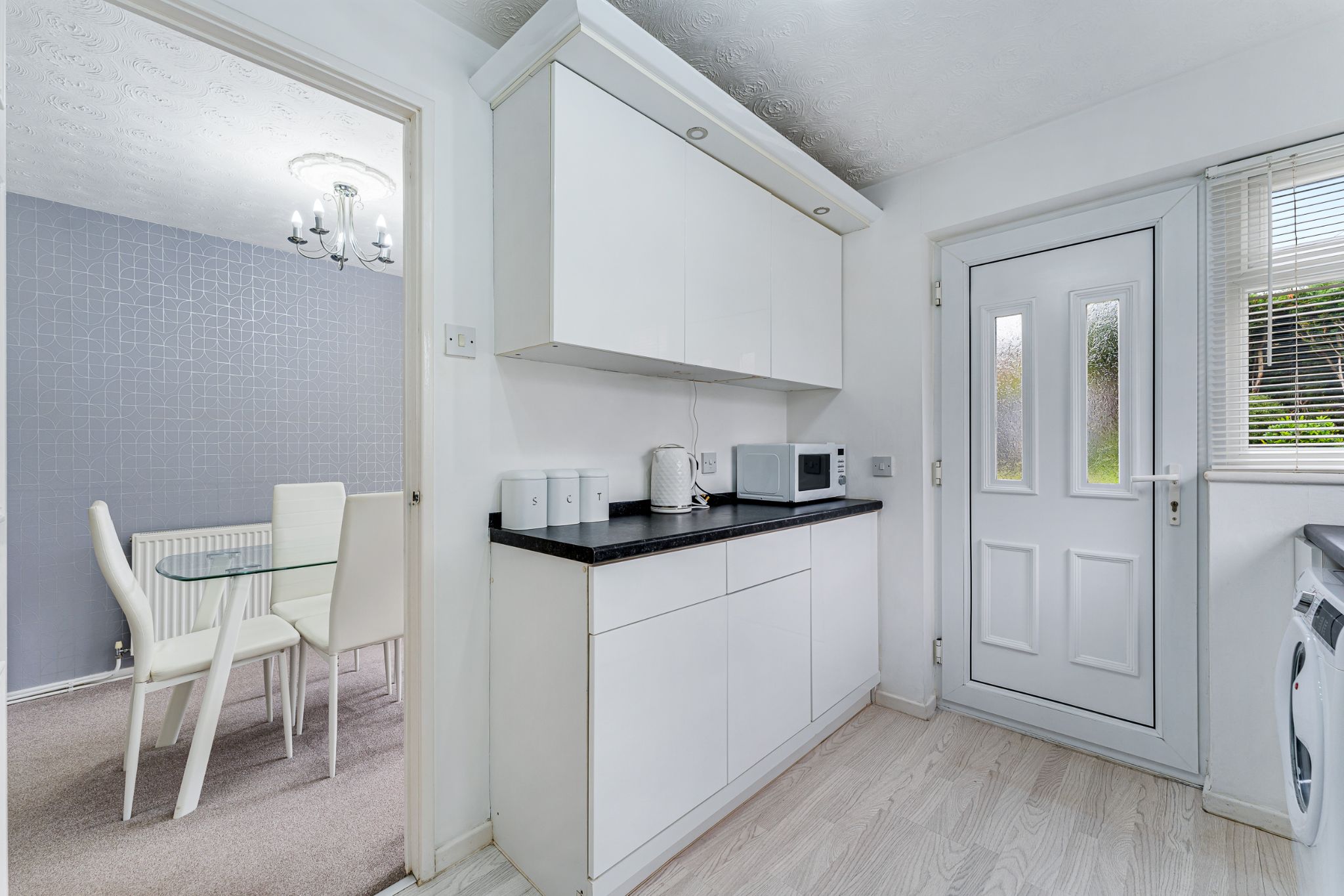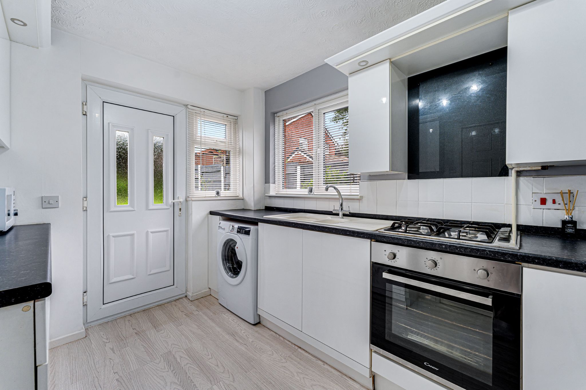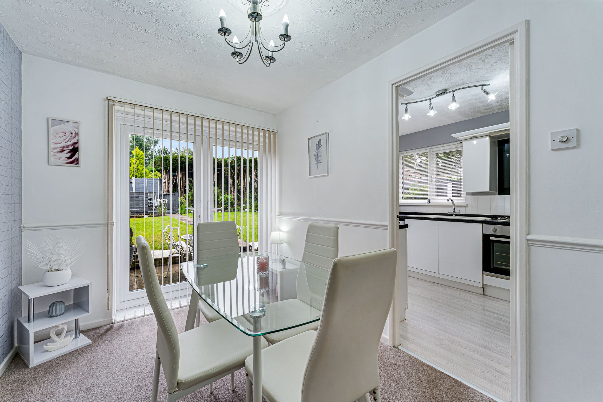 After parking on the driveway, step through the front door into a welcoming entrance hallway. To your left, double doors open into the bright and inviting lounge, where a bay window fills the space with natural light. Cleverly concealed beneath the stairs, a storage cupboard houses the recently fitted combi boiler while offering plenty of room to keep everyday essentials tucked neatly away. Continue through to the dining room - ideally suited for family meals or entertaining guests. Double doors between the lounge and dining room allow you to open the space for a seamless flow or close it off for a cosy night in. Newly installed patio doors offer a lovely outlook over the rear garden and direct access for summer dining. The kitchen is fitted with a sleek range of modern white base and wall units, complemented by an integrated oven and 4-ring gas hob. Plumbing is in place for a washing machine and fridge-freezer, and a handy breakfast bar makes a great spot for casual meals or keeping the little ones nearby as you cook. Dual aspect windows frame views of the garden to the side and rear, while a door leads directly outside - perfect for hosting and enjoying those warmer months.