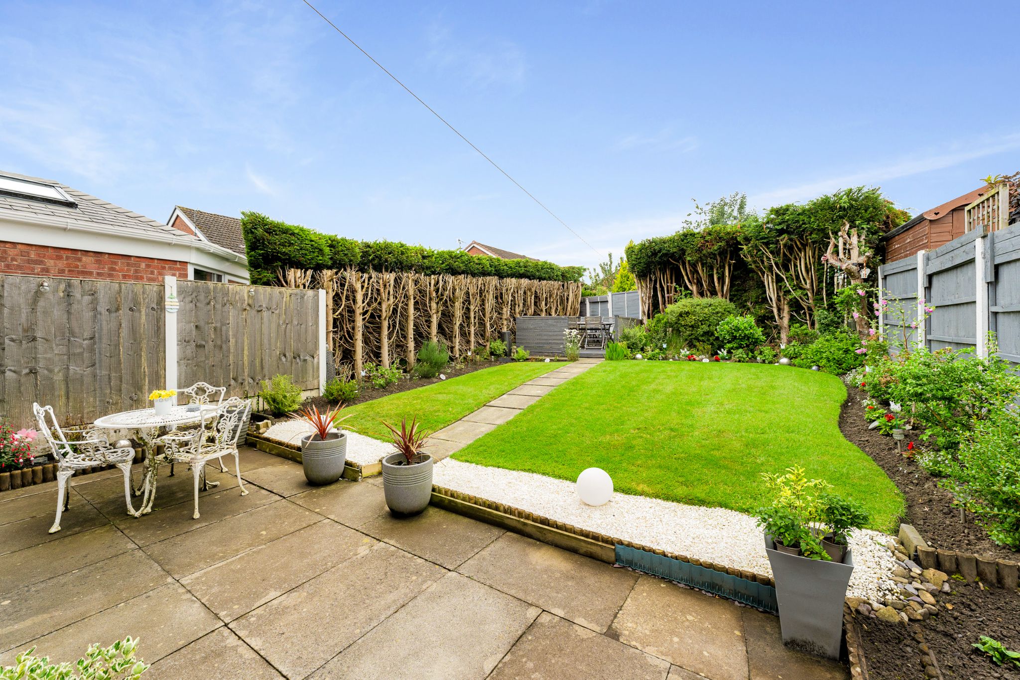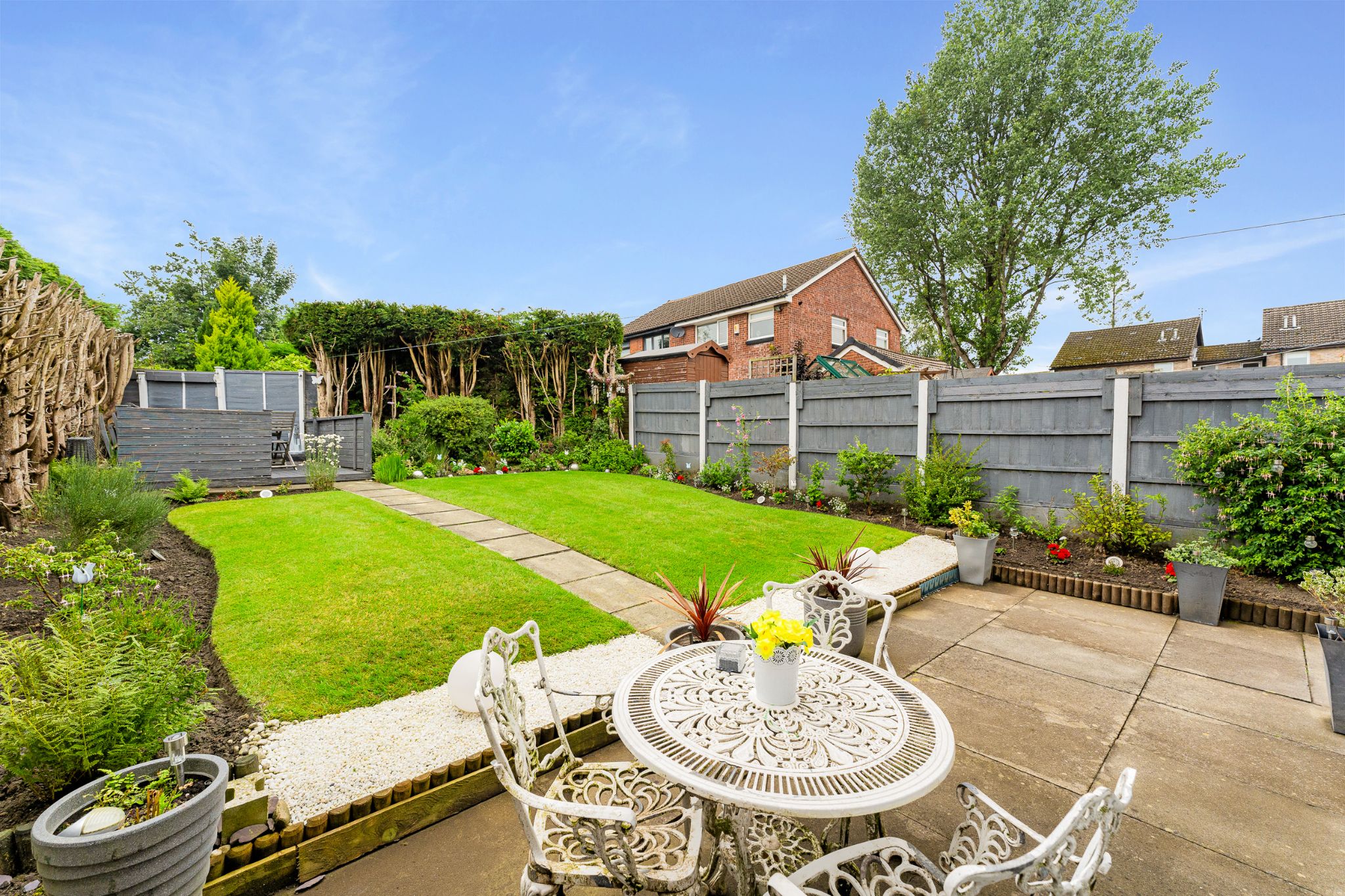 Step out of the rear patio doors into your own private haven - an idyllic, west-facing garden that captures the afternoon and evening sun beautifully. Designed for both relaxation and entertaining, the space features a flagged patio and manicured lawn, bordered by vibrant flowerbeds and framed with mature hedging for a sense of privacy—despite the garden not feeling overlooked. In the top corner, a raised wooden decked terrace creates the perfect sun trap—ideal for al fresco dining, evening drinks with friends, or simply unwinding with a good book. A paved pathway leads around the side of the property, where the flowerbeds continue to add charm and seasonal colour, before reaching a secure gate that connects to the front garden and driveway.