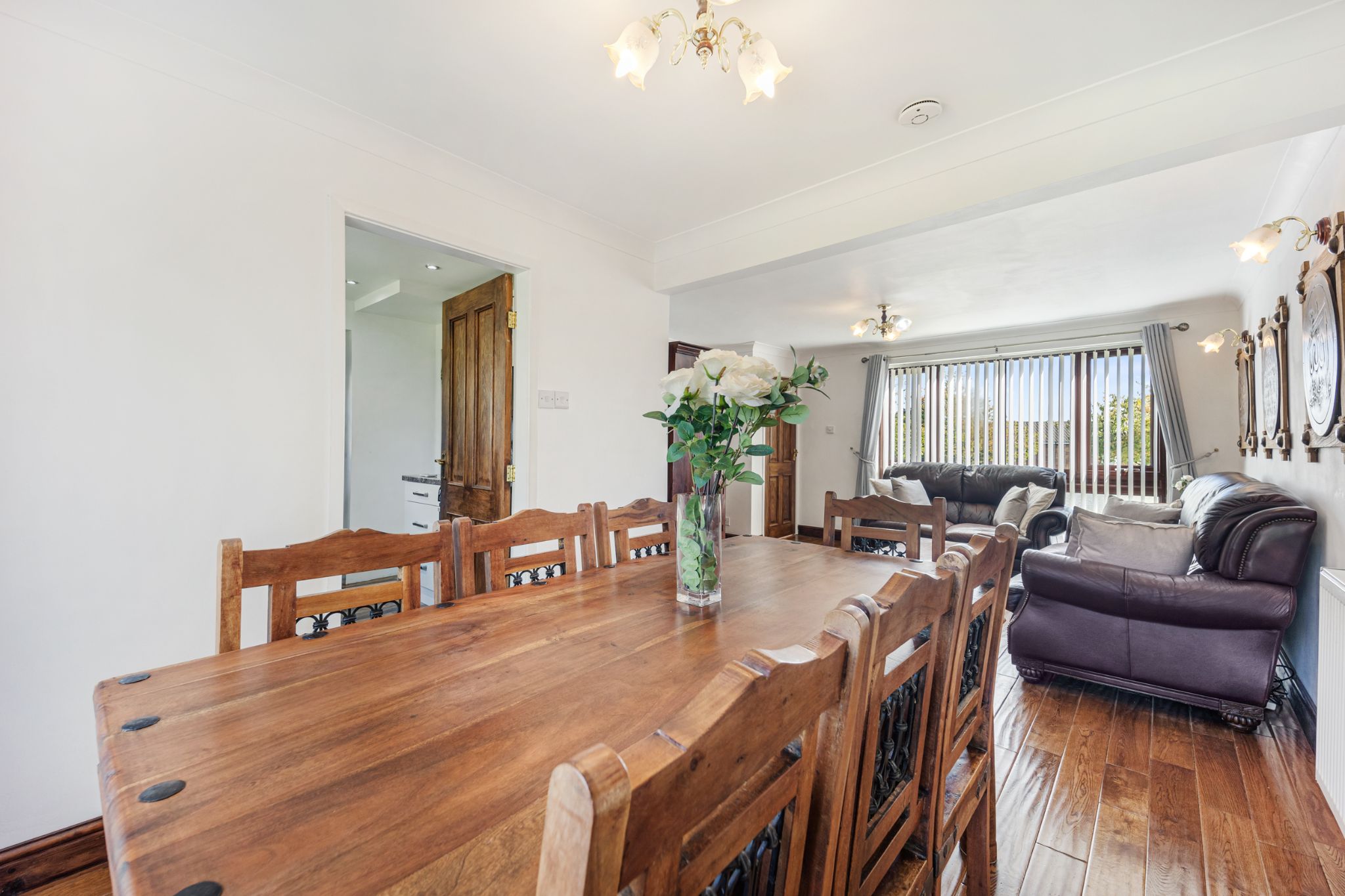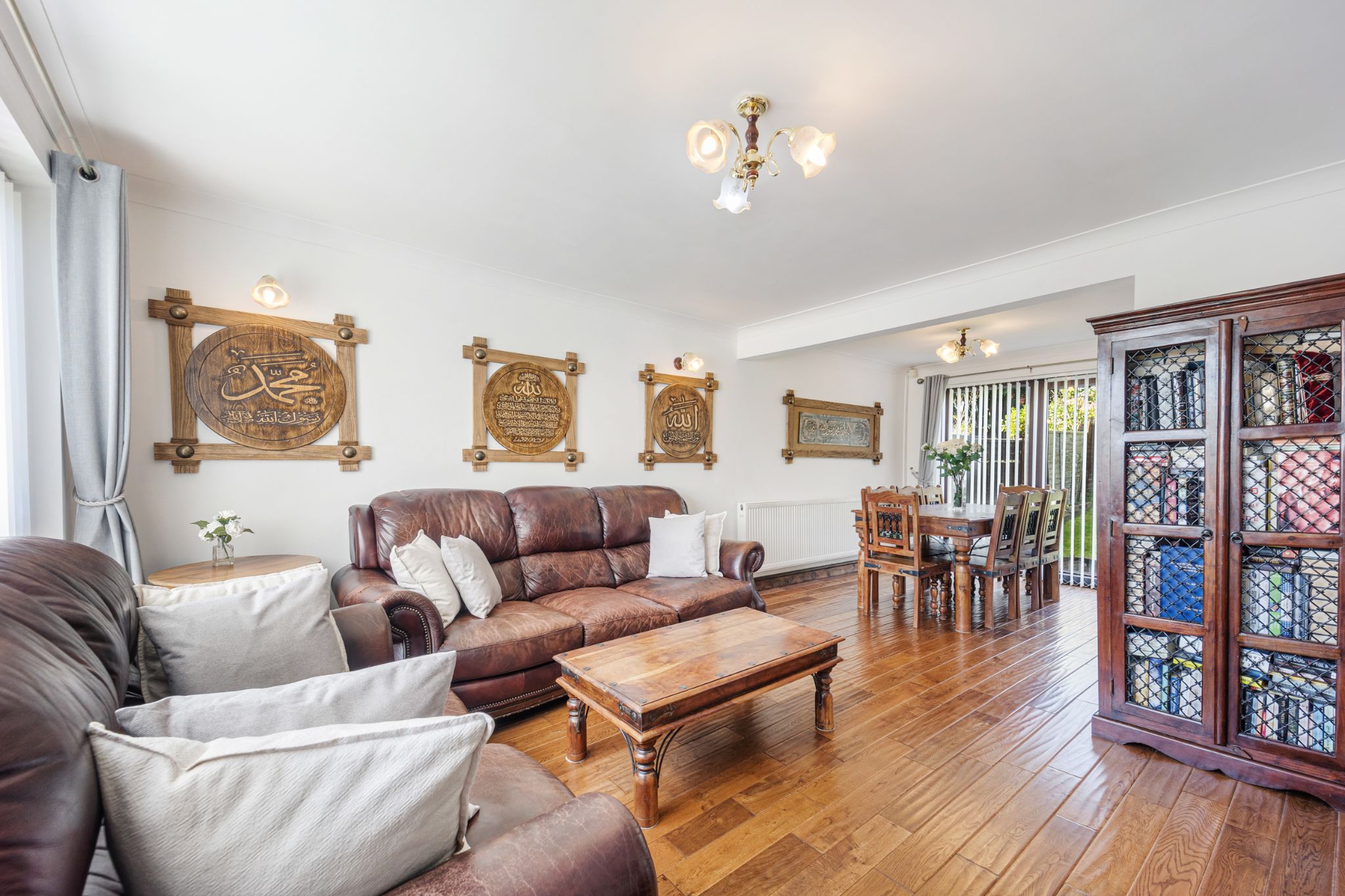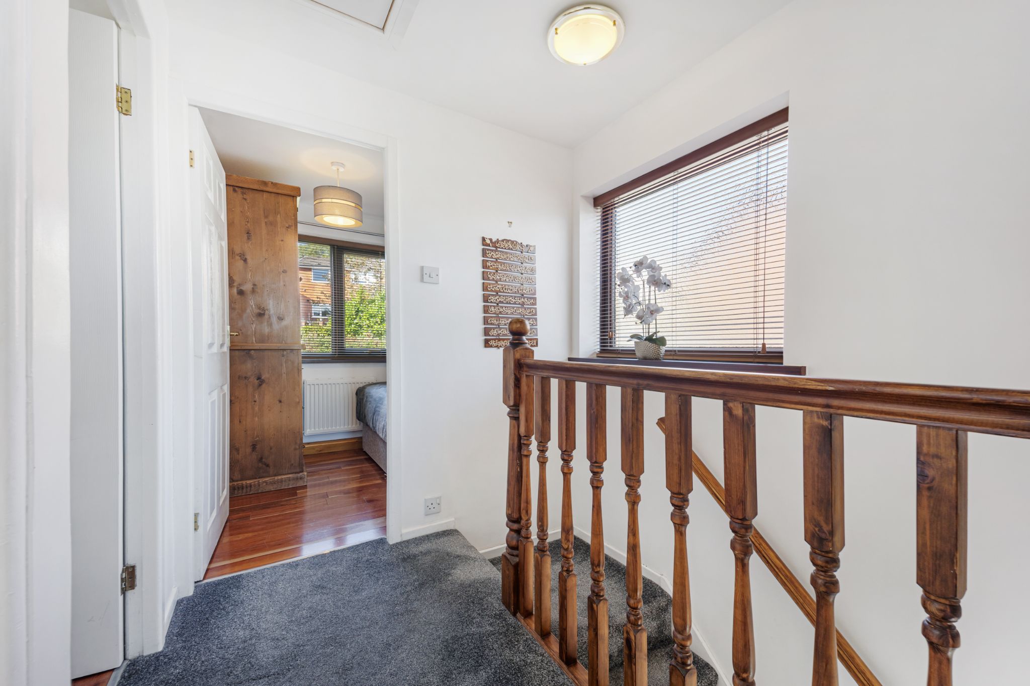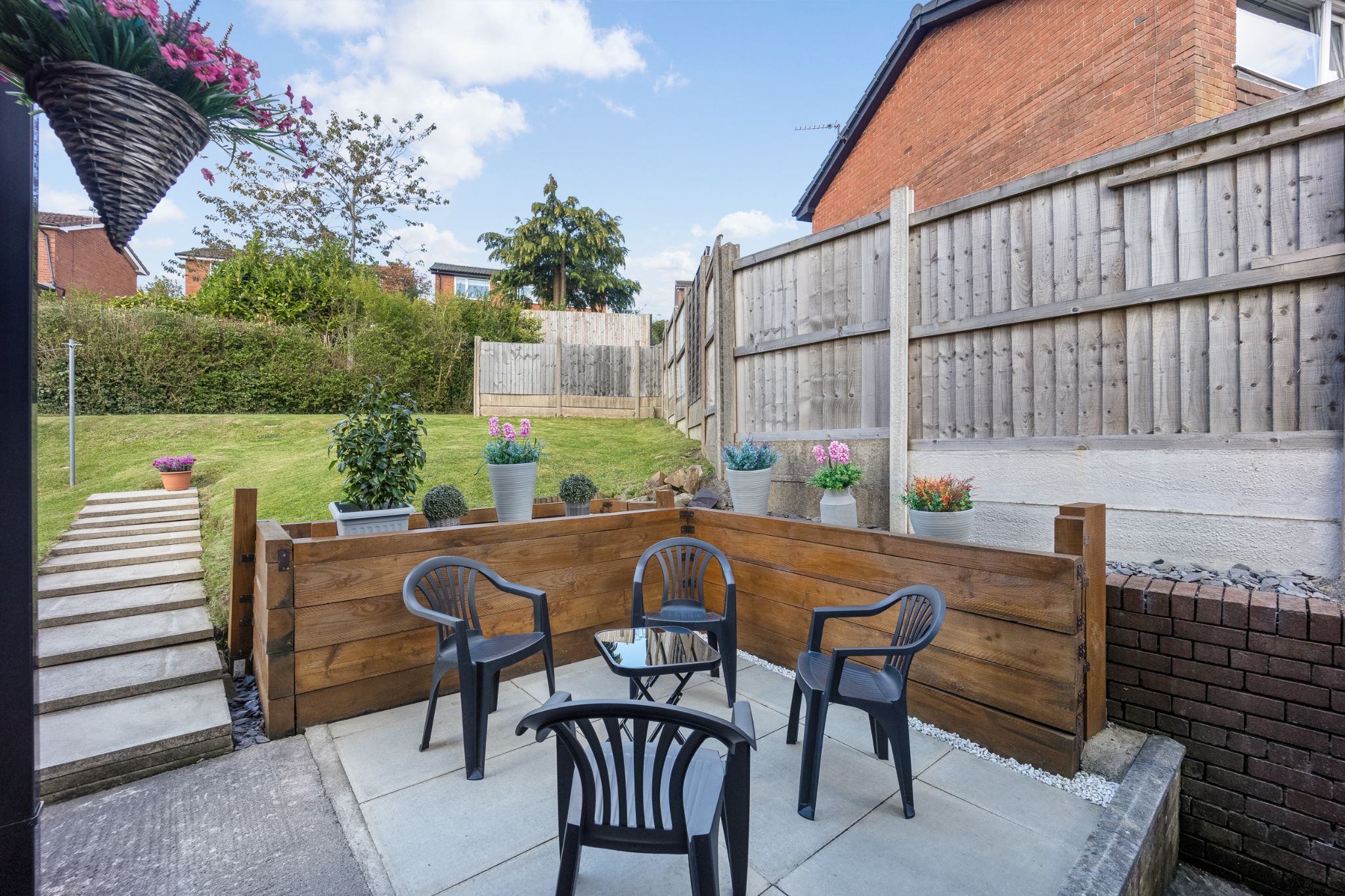 Step out of the rear doors into a brilliantly sized garden, where a flagged patio with raised planters offers a lovely spot for your outdoor furniture and BBQ. Steps lead up to a large lawn with mature hedging to add a touch of privacy. This plot is large enough to offer scope to extend the home to the rear and still have plenty of garden to enjoy! A pathway leads around the side of the home to the front driveway, and the garage has doors to the front and rear for easy access.