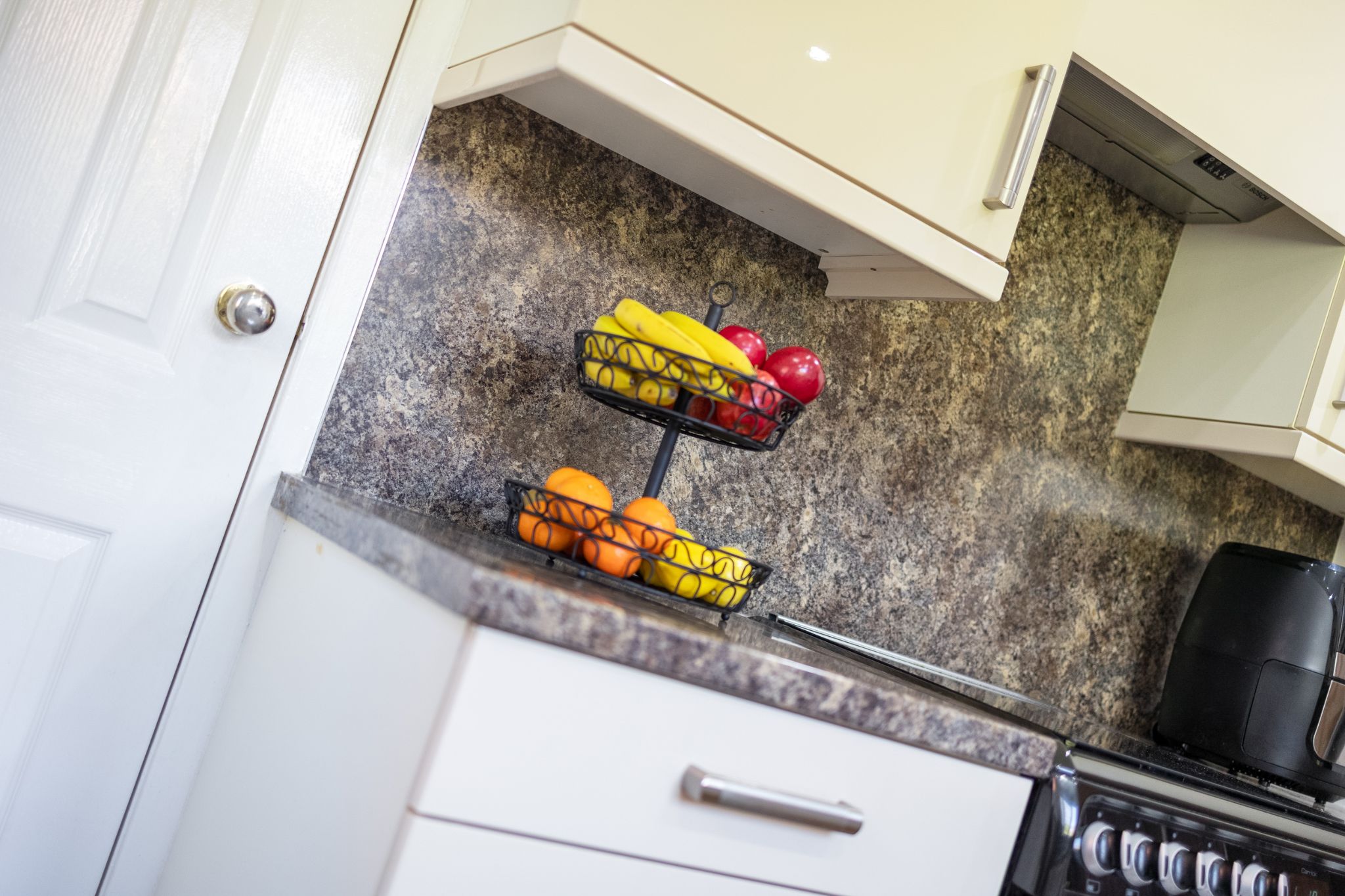 Park up on the driveway, and step through the front door into the entrance hallway. A storage closet on your right keeps all your shoes and coats tidy, and a door to your left opens up to the bright and spacious lounge-diner. Wooden floors guide you in, creating a contemporary feeling to this family home, and the space is filled with natural light from the dual aspect windows. There's plenty of space for your furniture and a large dining table in front of the sliding patio doors to the rear - ideal for modern family life. The kitchen has a range of fitted cream base and wall units with plumbing provisions for all your appliances, and the all-important storage cupboard for bulkier items. A door leads to the side of the home too for convenience.