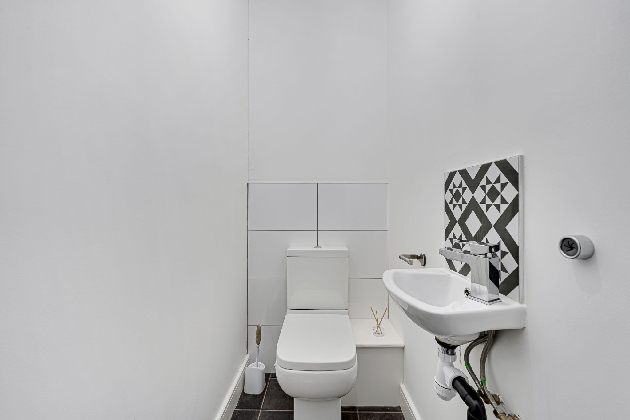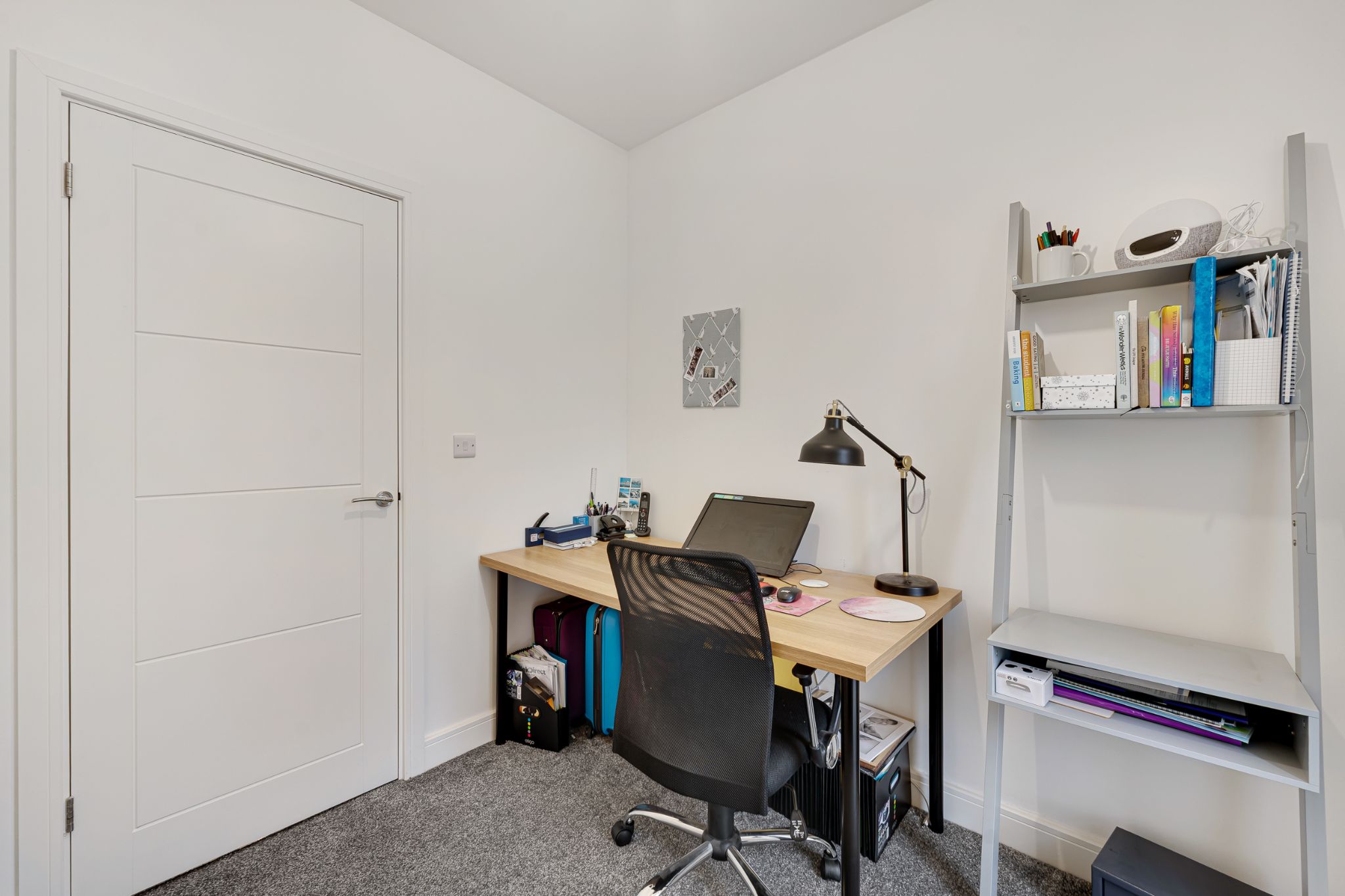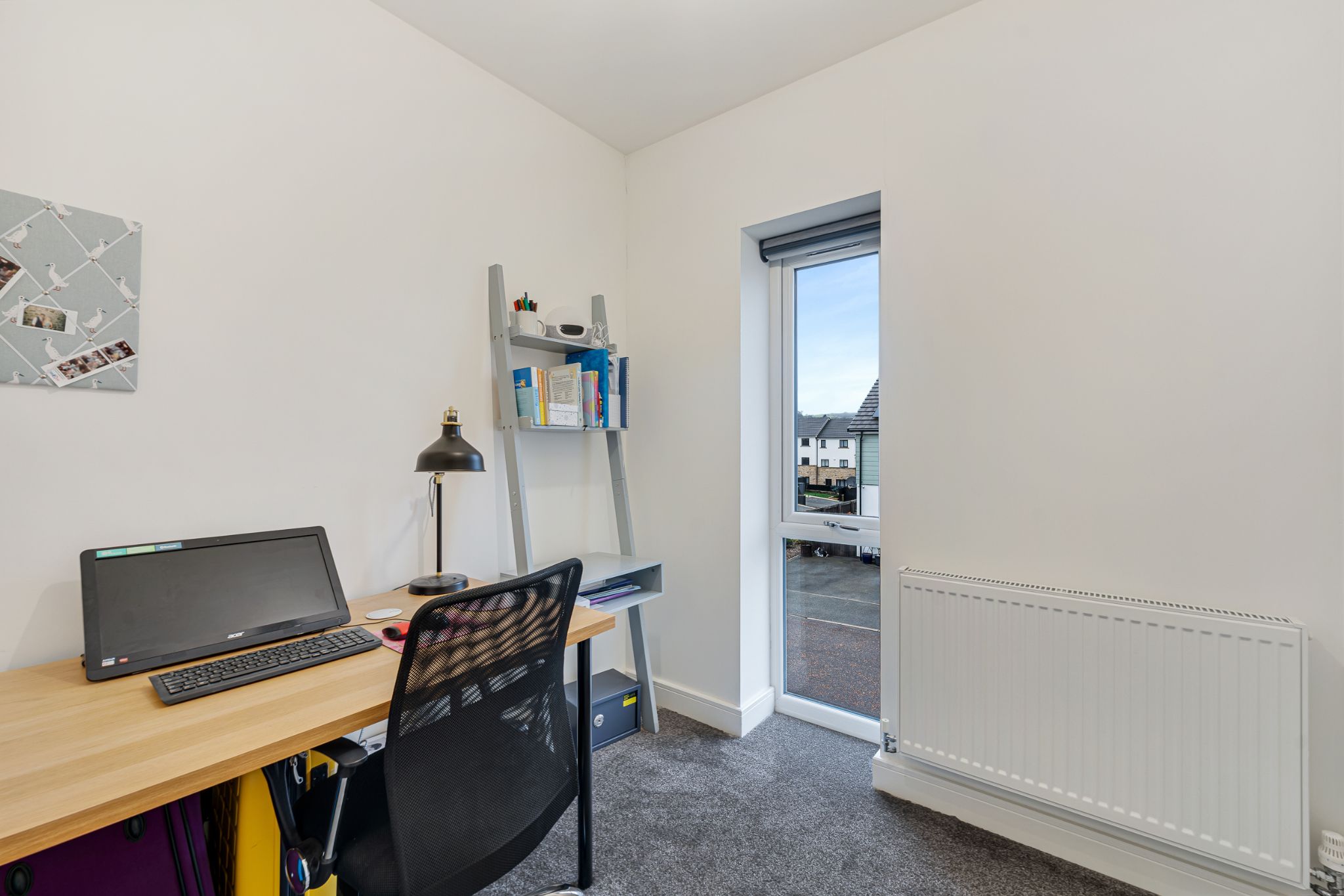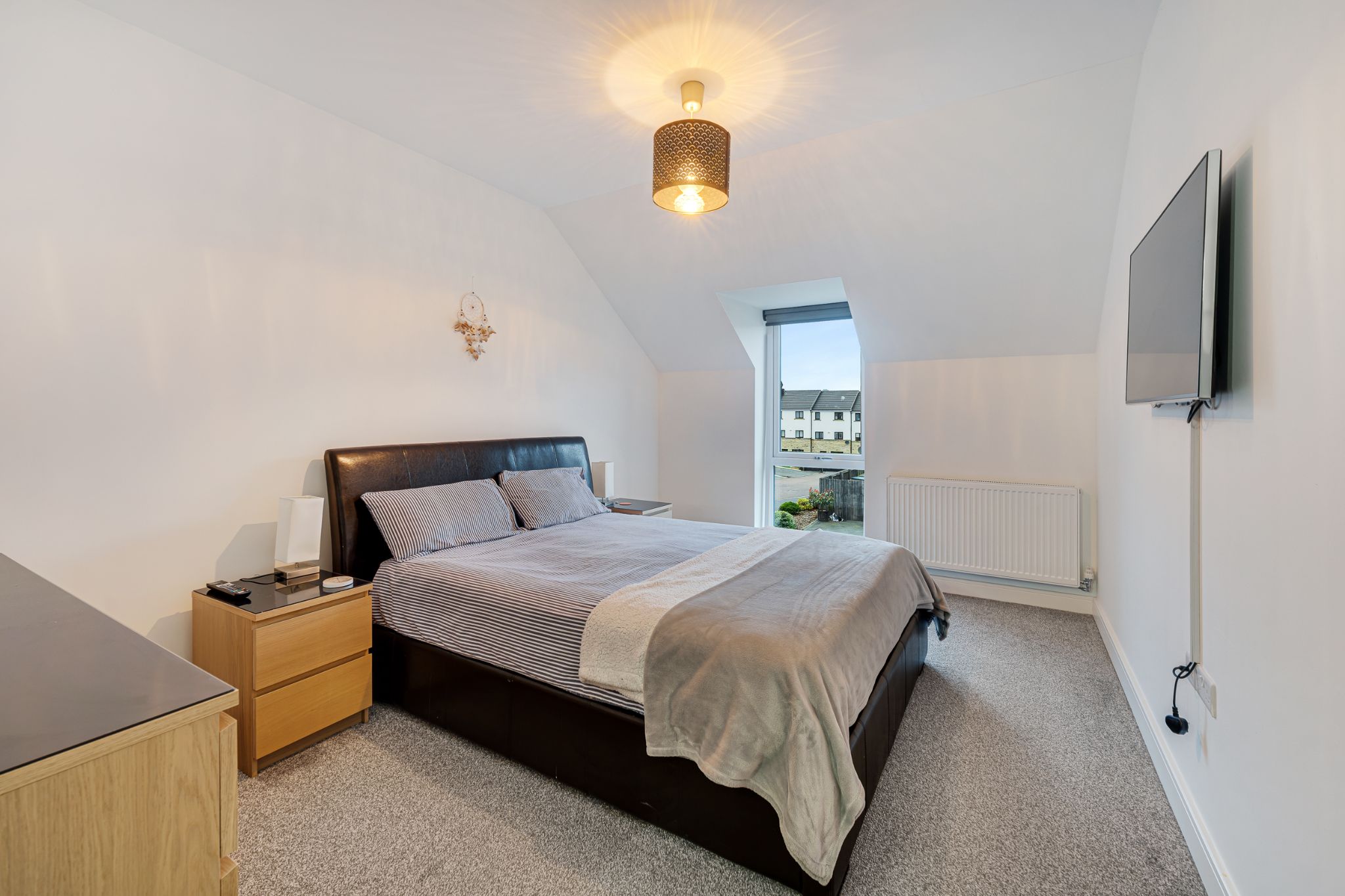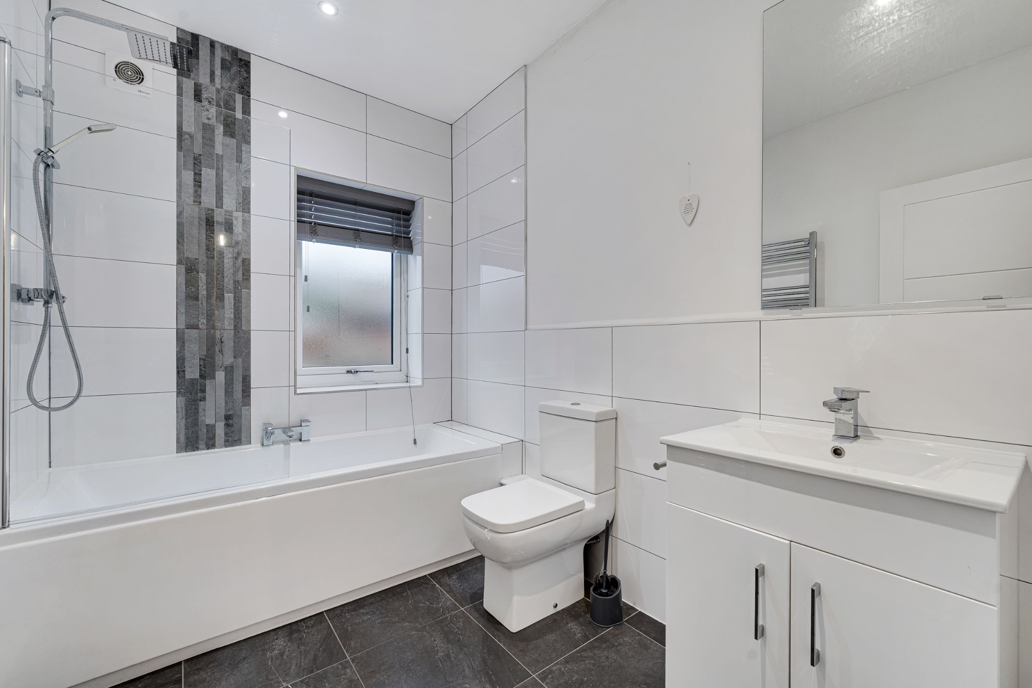Retrace your steps to the entrance hall, stairs lead to the first floor where you will find four well-proportioned bedrooms and a three-piece family bathroom. The impressive master bedroom spans the full length of the property. It benefits from a dedicated wardrobe area and a stylish ensuite comprising an enclosed shower, WC, wash basin, chrome heated towel rail, and a Velux window that allows natural light to fill the space. Bedrooms two and three are both excellent-sized doubles, ideal for family members or guests, while bedroom four is a spacious single room, currently used as a home office, offering flexibility. The family bathroom is part-tiled and fitted with a modern vanity unit, WC, a bath with both overhead and handheld shower attachments and a chrome heated towel rail.