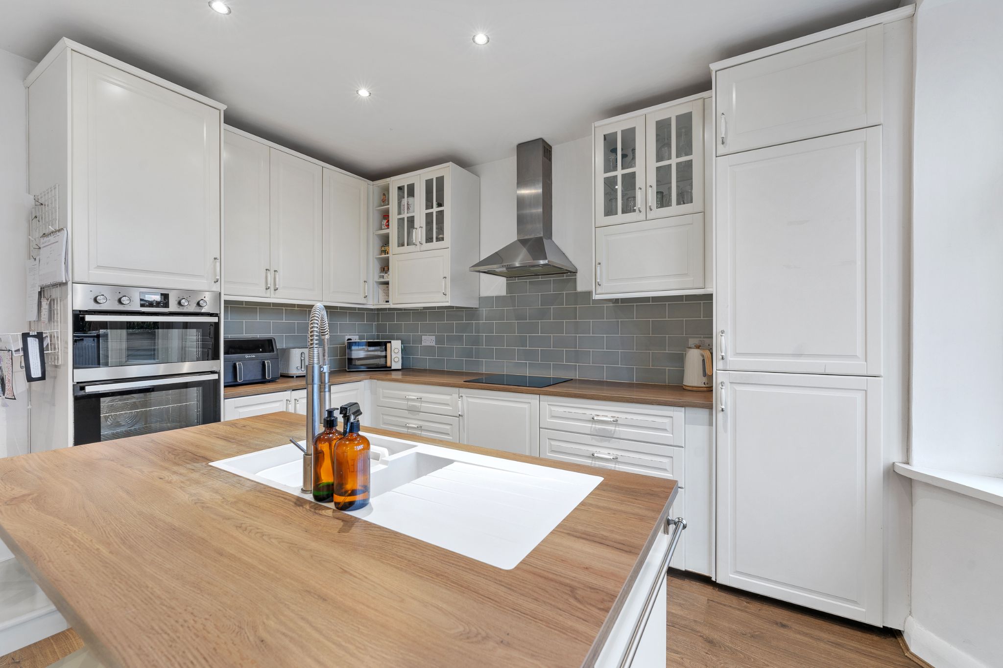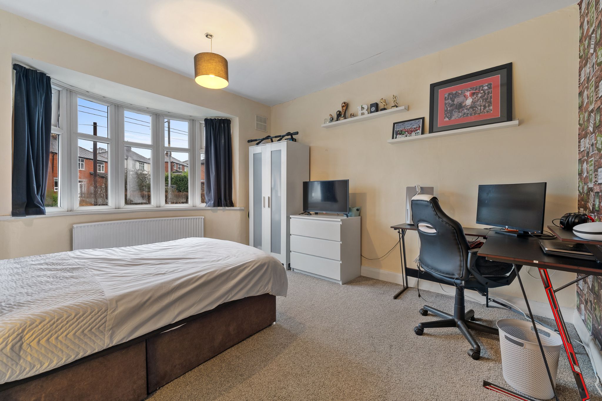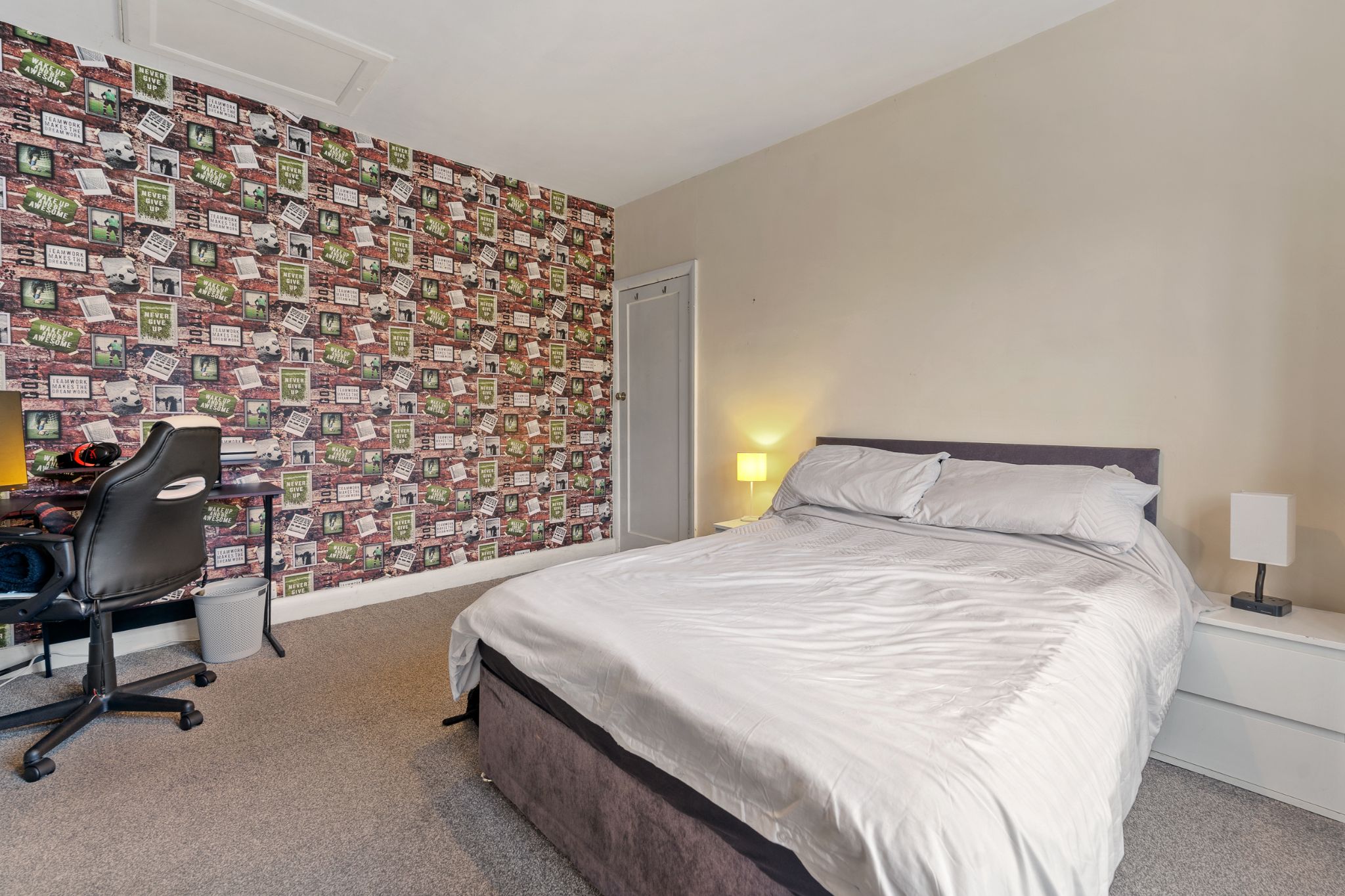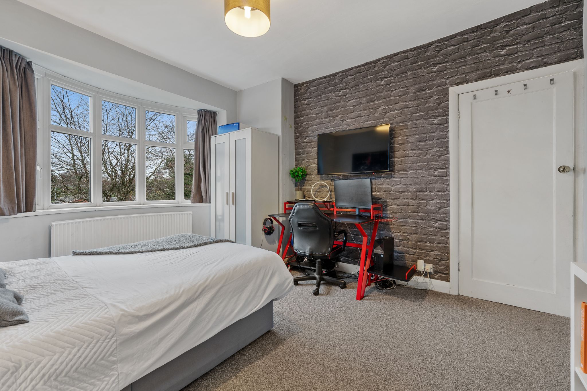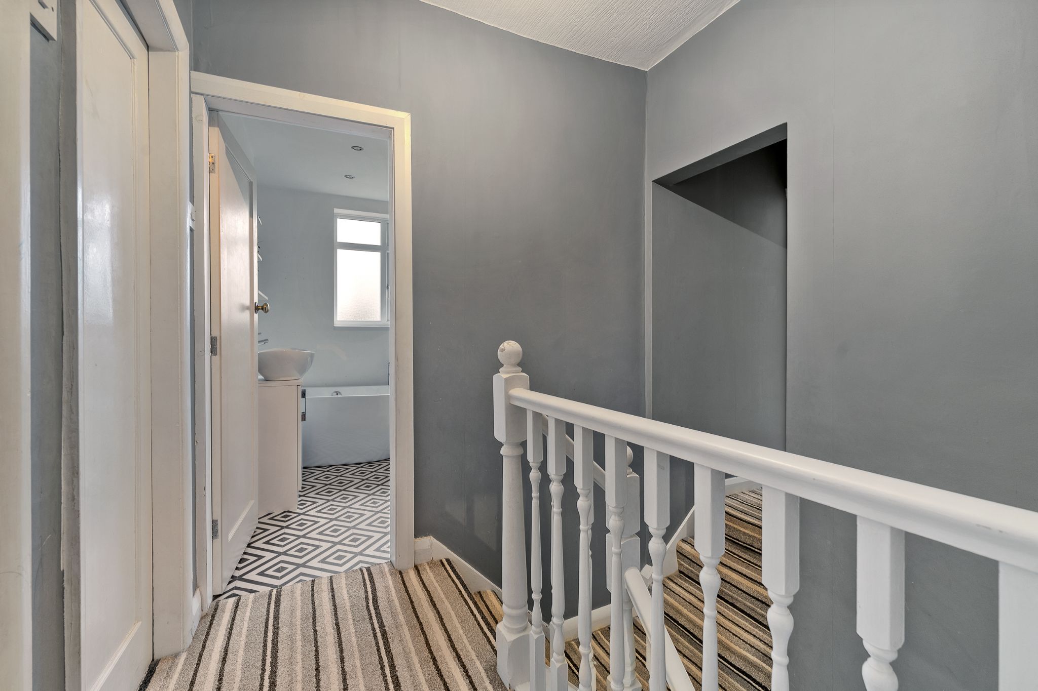 To the first floor are four well-proportioned bedrooms and a stylish four-piece family bathroom. The master bedroom is a generous double and benefits from a large dressing room that could easily be converted into a fifth bedroom or a spacious ensuite if desired, as plumbing provisions are already in place. Bedrooms two and three are also spacious doubles, both featuring attractive bay windows, while bedroom four is a well-sized single room, currently used as a storage space/home gym. The family bathroom is part-tiled and fitted with a bath, large walk-in shower, vanity unit, WC and chrome heated towel rail.