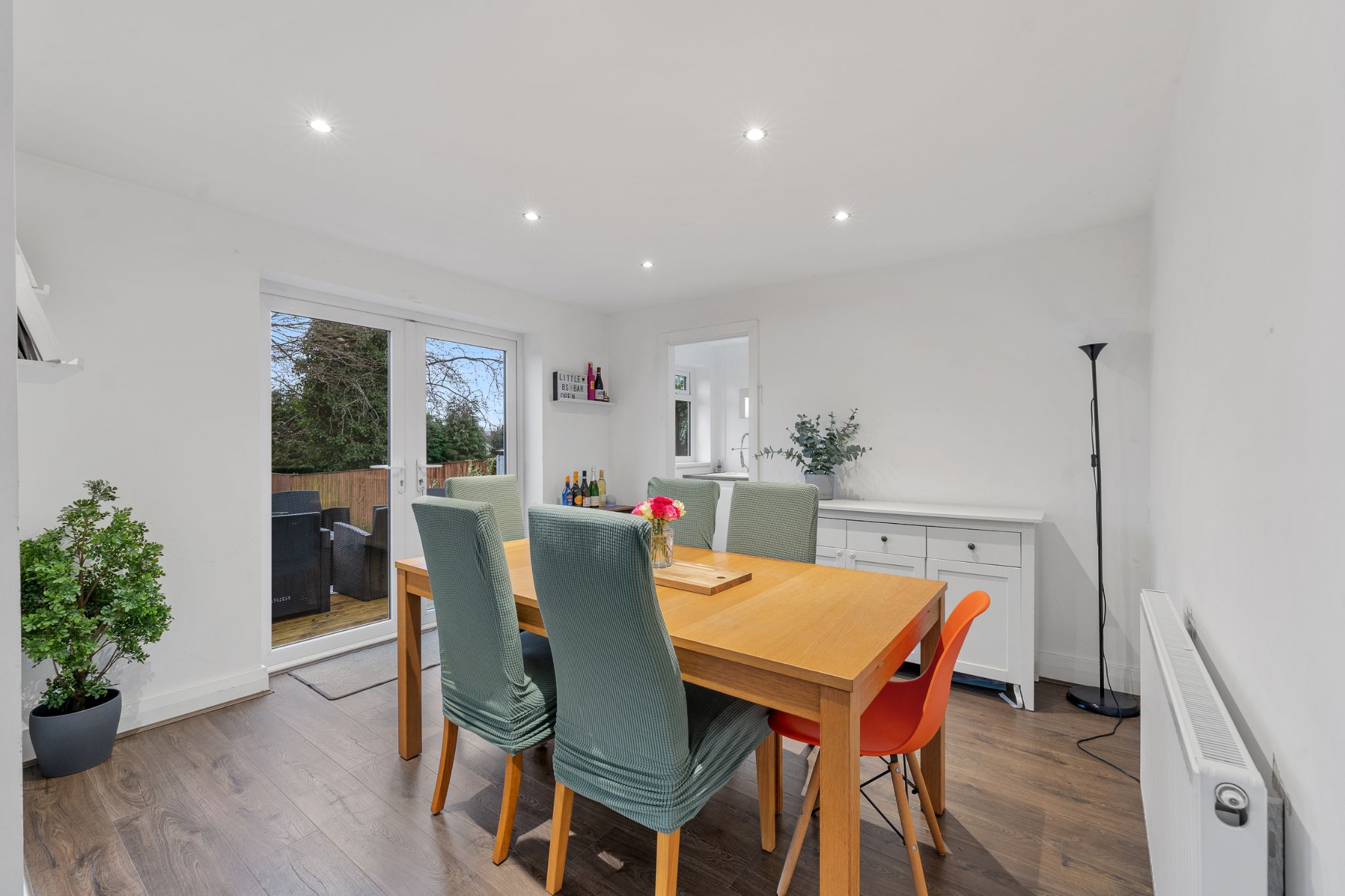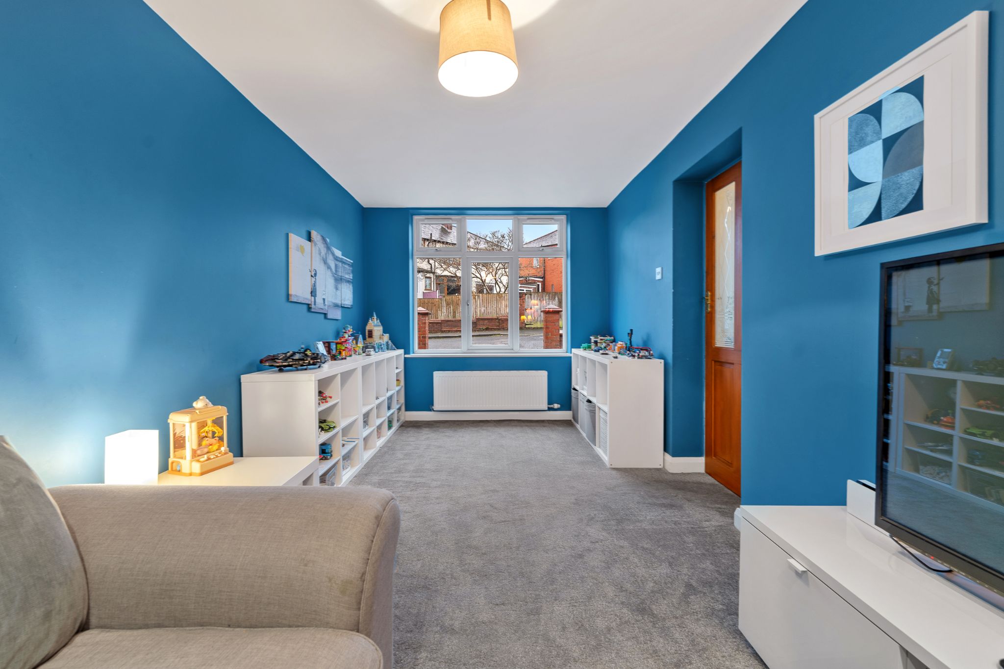 Park up on the driveway and enter into to the welcoming entrance vestibule, opening to the hallway with useful under-stairs storage. To the right is a generously sized second reception room, currently used as a playroom, offering excellent versatility. To your right of the hallway is the cosy lounge, featuring a character fireplace and a bright bay window fitted with shutter blinds, allowing plenty of natural light. To the rear, the property opens into an impressive open-plan kitchen/diner, ideal for family life and entertaining. The kitchen is fitted with white wall and base units, integrated appliances including a double oven and grill, electric hob, extractor hood and fridge freezer, along with a central island and breakfast bar — the perfect spot to enjoy morning coffee while overlooking the rear garden. The dining area benefits from patio doors opening onto the garden. Continue into the practical utility room with additional storage, sink, plumbing for a washing machine and a rear door. The downstairs shower room comprises of a WC, enclosed shower, heated towel rail and housing the boiler.
