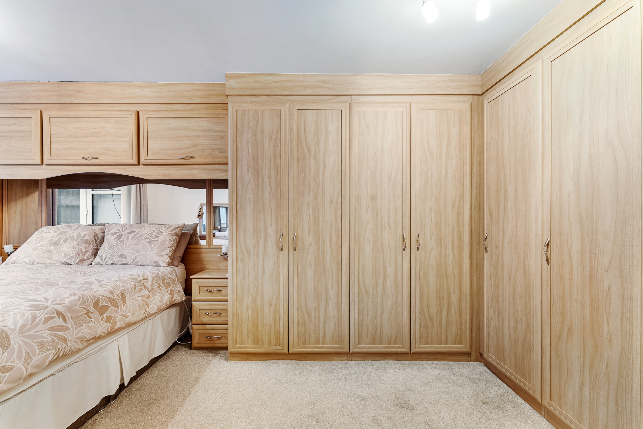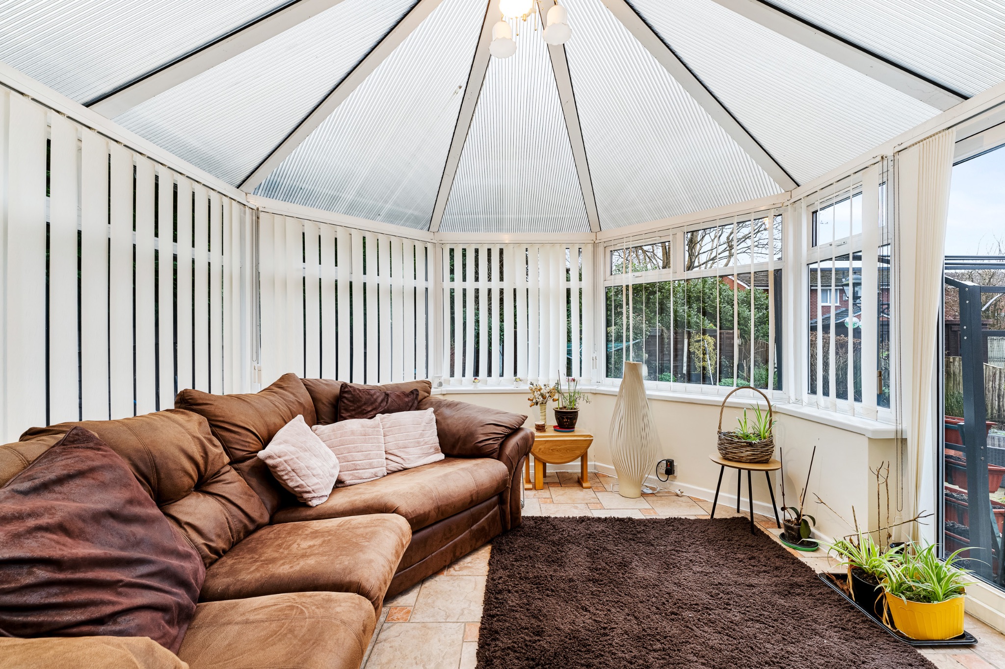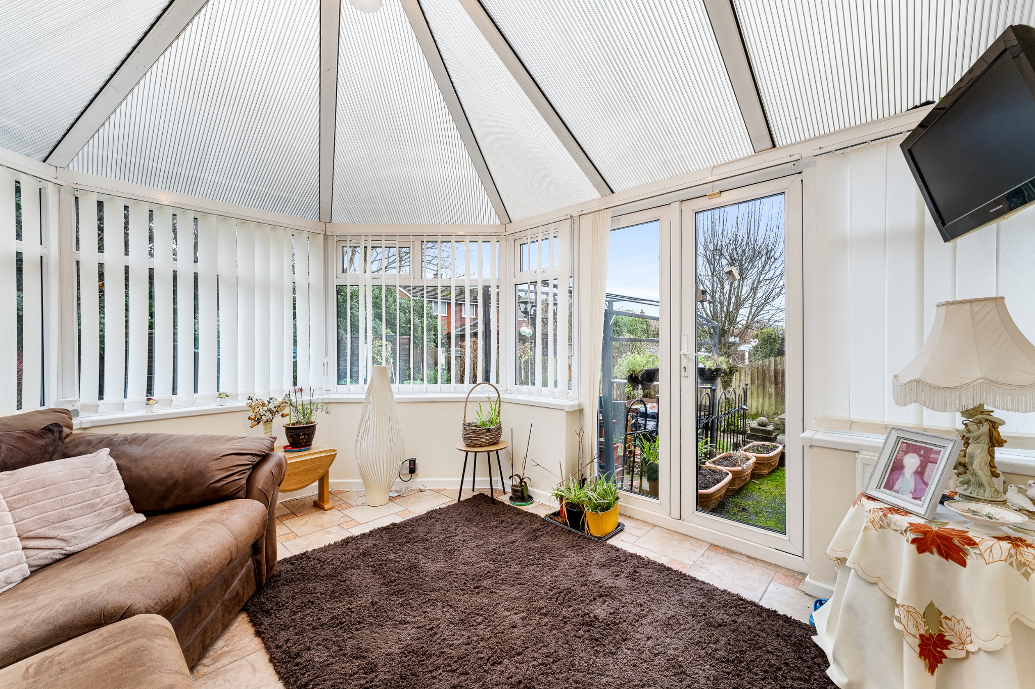Down the hallway, the master bedroom boasts a range of fitted furniture and a large window looks over the impressive rear garden. Bedroom two is another good sized double with French doors leading to the spacious conservatory. A additional set of French doors give access to the garden patio, perfect during those warmer summer months. Fully tiled elevations in grey tones and a fitted storage cupboard. The modern family shower room features a tiled/glazed shower enclosure with a rain fall shower head and an additional shower head and flexible hose at a lower level. Vanity wash basin with storage below, low level Wc with a concealed cistern, chrome heated towel rail. Grey tiled elevations in contrasting tones.