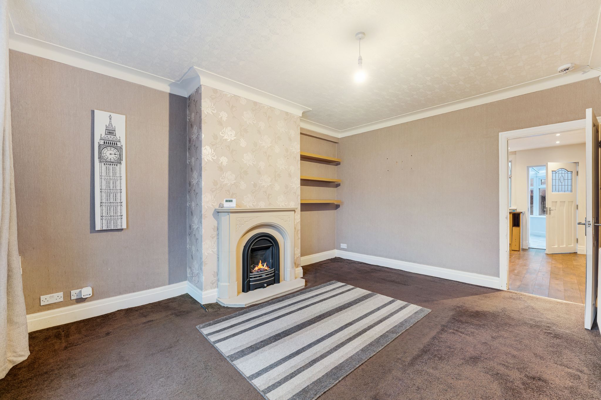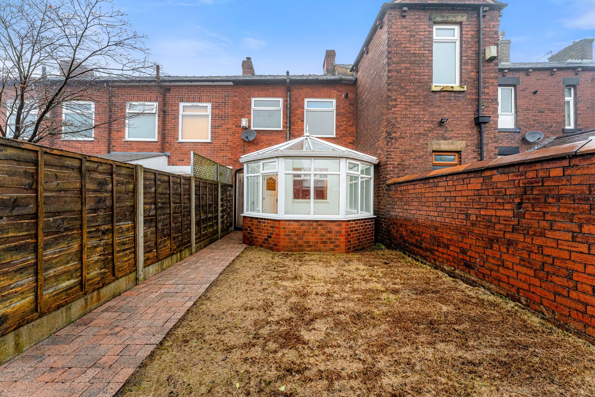 Through the patio doors, you are led into the rear garden, which features a lawned area ideal for outdoor furniture. A block-paved pathway provides access to the rear gate, leading onto the back street, while nearby green spaces offer tranquil routes for walks.