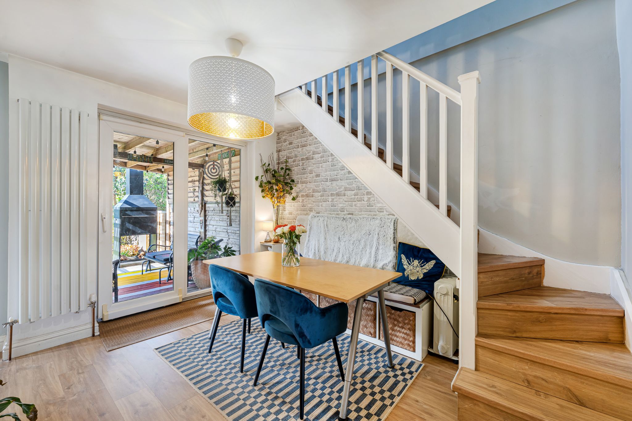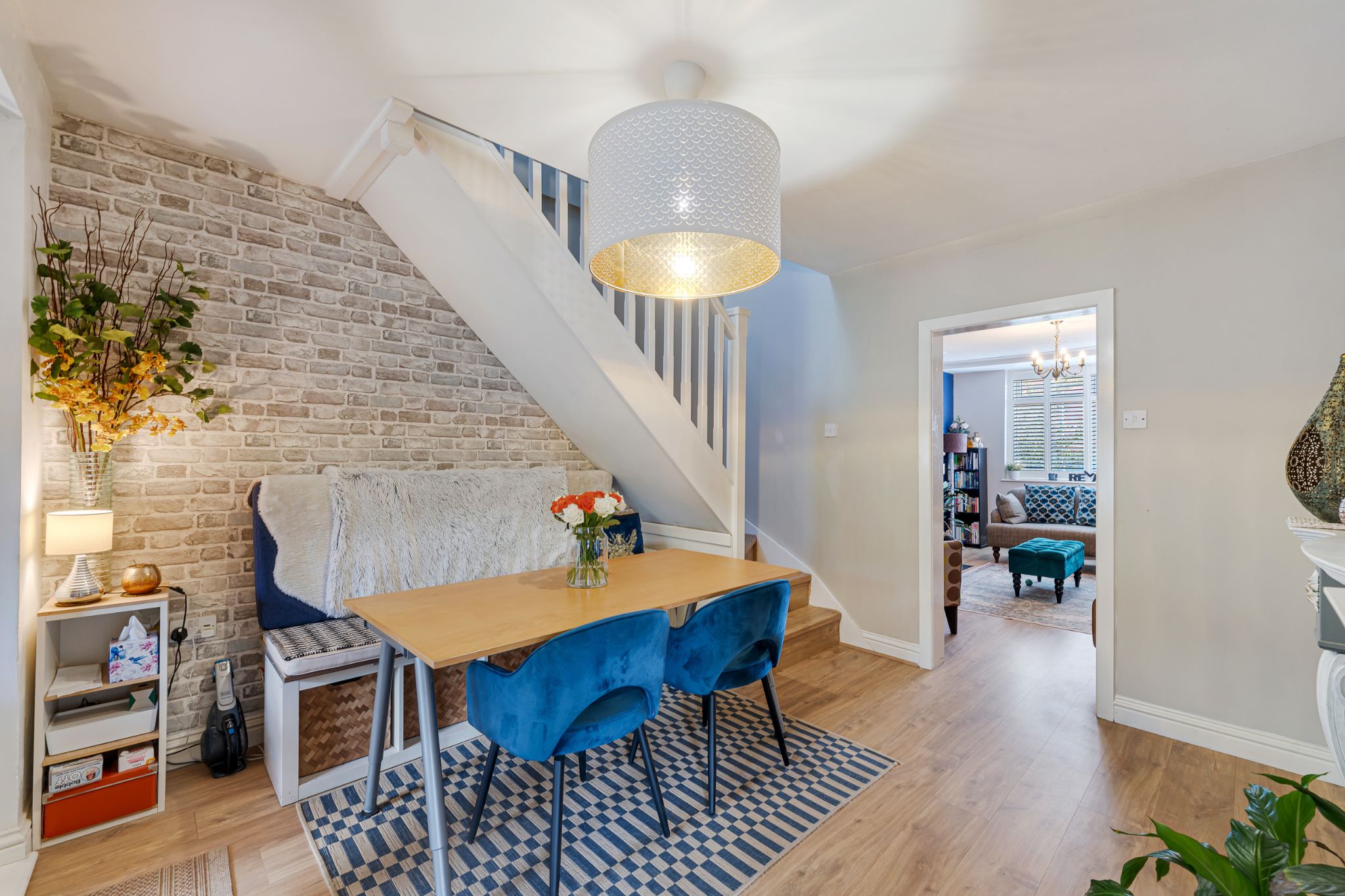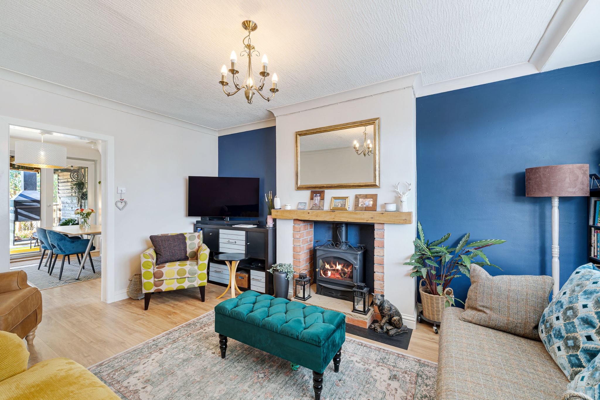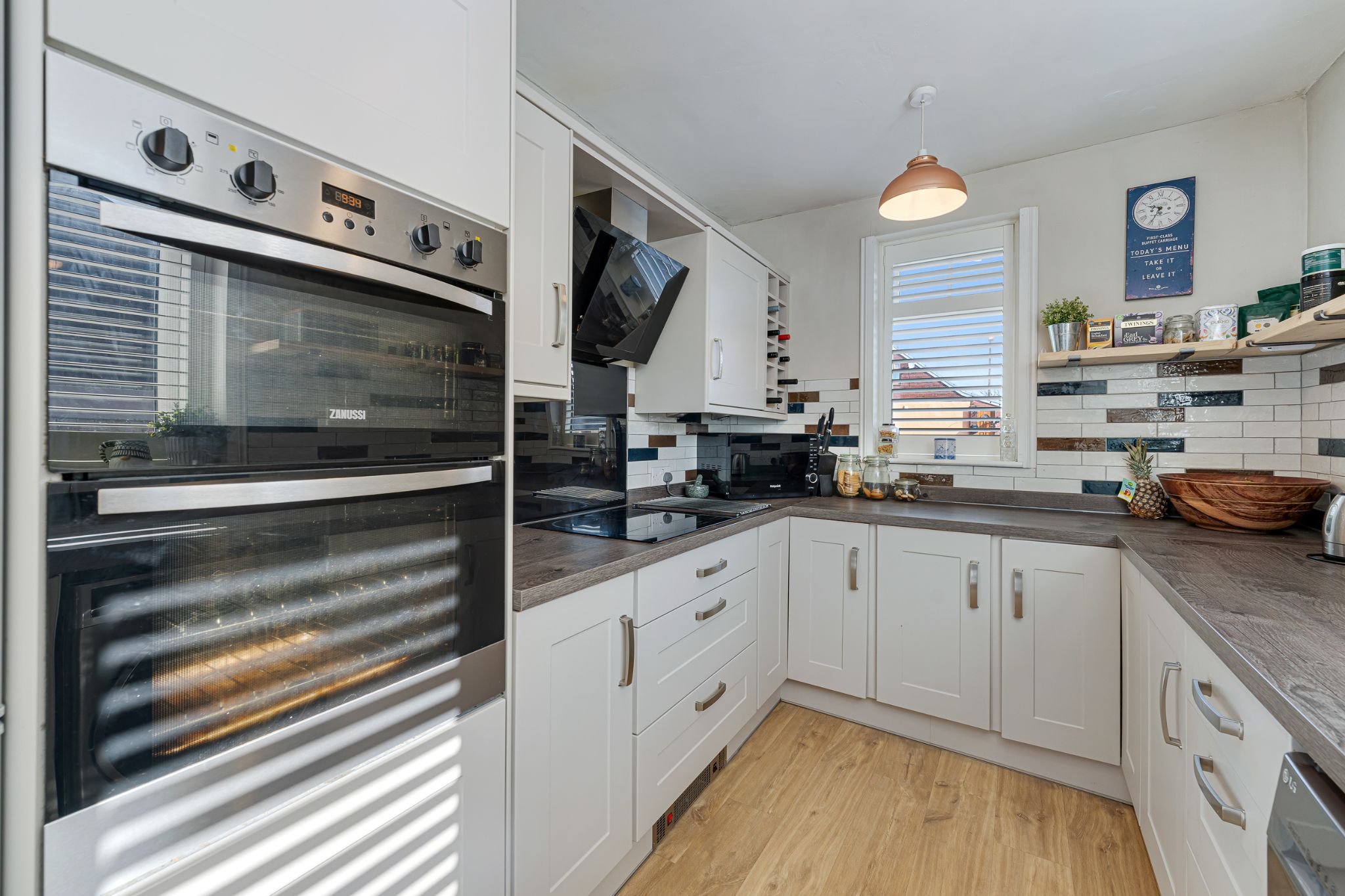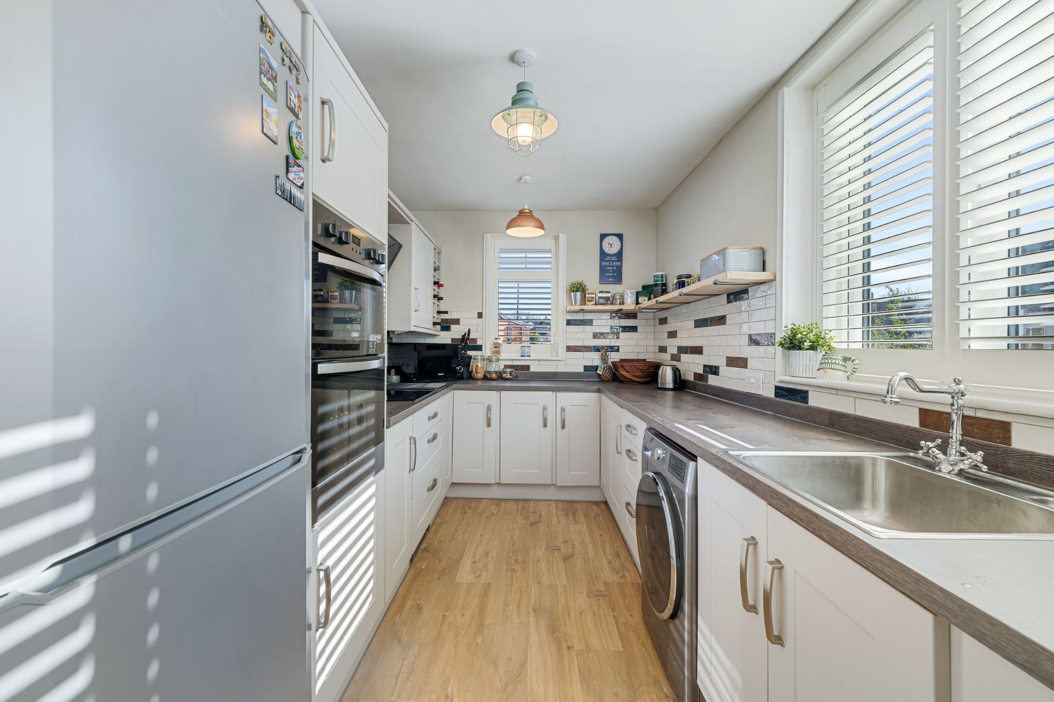 After parking on the driveway, step through the front door into a spacious entrance hallway. To your right, you’ll find the kitchen, fitted with stone coloured wall and base units, complemented by quality worktops and a tiled splashback. Integrated appliances include a stainless steel sink, electric induction hob with extractor hood, eye-level oven and grill, and a dishwasher. There is also space for a fridge freezer and washing machine. Returning to the hallway, continue through to the dining room, which offers ample space for seating and a dining table, with sliding patio doors opening onto the rear garden - bringing the outside in on those warmer summer months. Just off the dining room is the lounge, positioned at the front of the home and featuring a large window with stylish plantation shutter blinds, a feature found throughout the property. A fireplace with a gas log fire creates a cosy focal point. Also accessed from the dining room is a double bedroom currently being used as a home office, a versatile space with patio doors leading to the rear garden. This room could easily be adapted for a variety of uses, including a second bedroom, study or snug. Completing the ground floor is the three-piece bathroom, comprising of a wash basin, WC, heated towel rail and a bath with overhead rain shower.