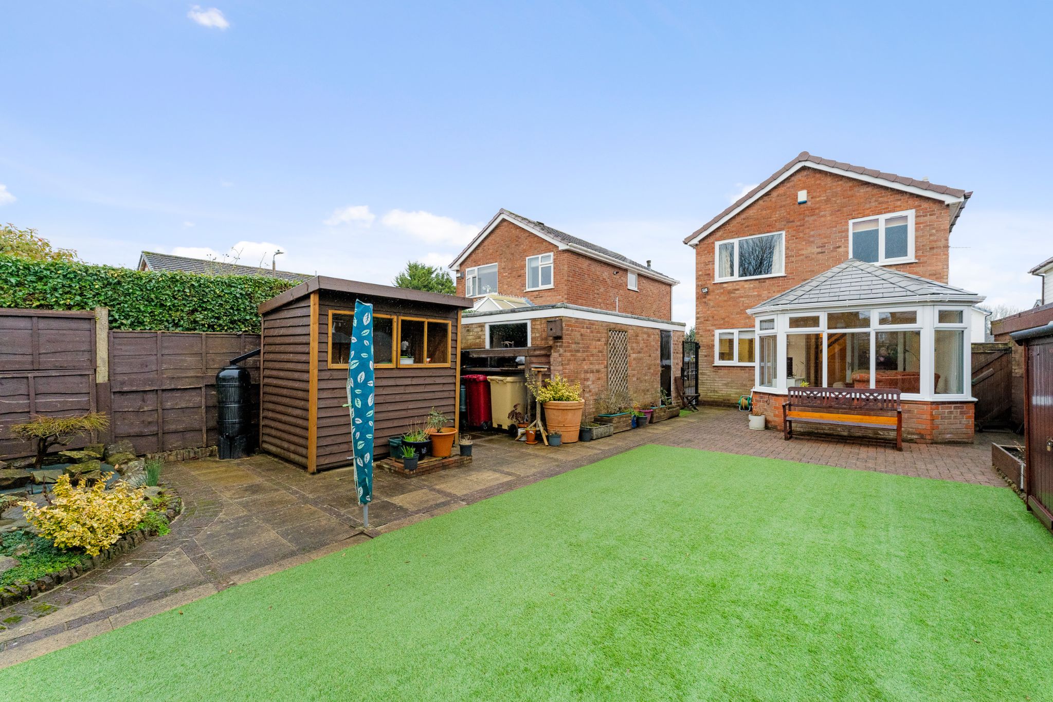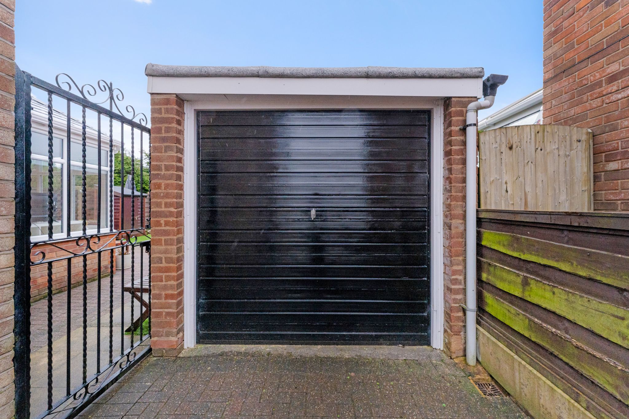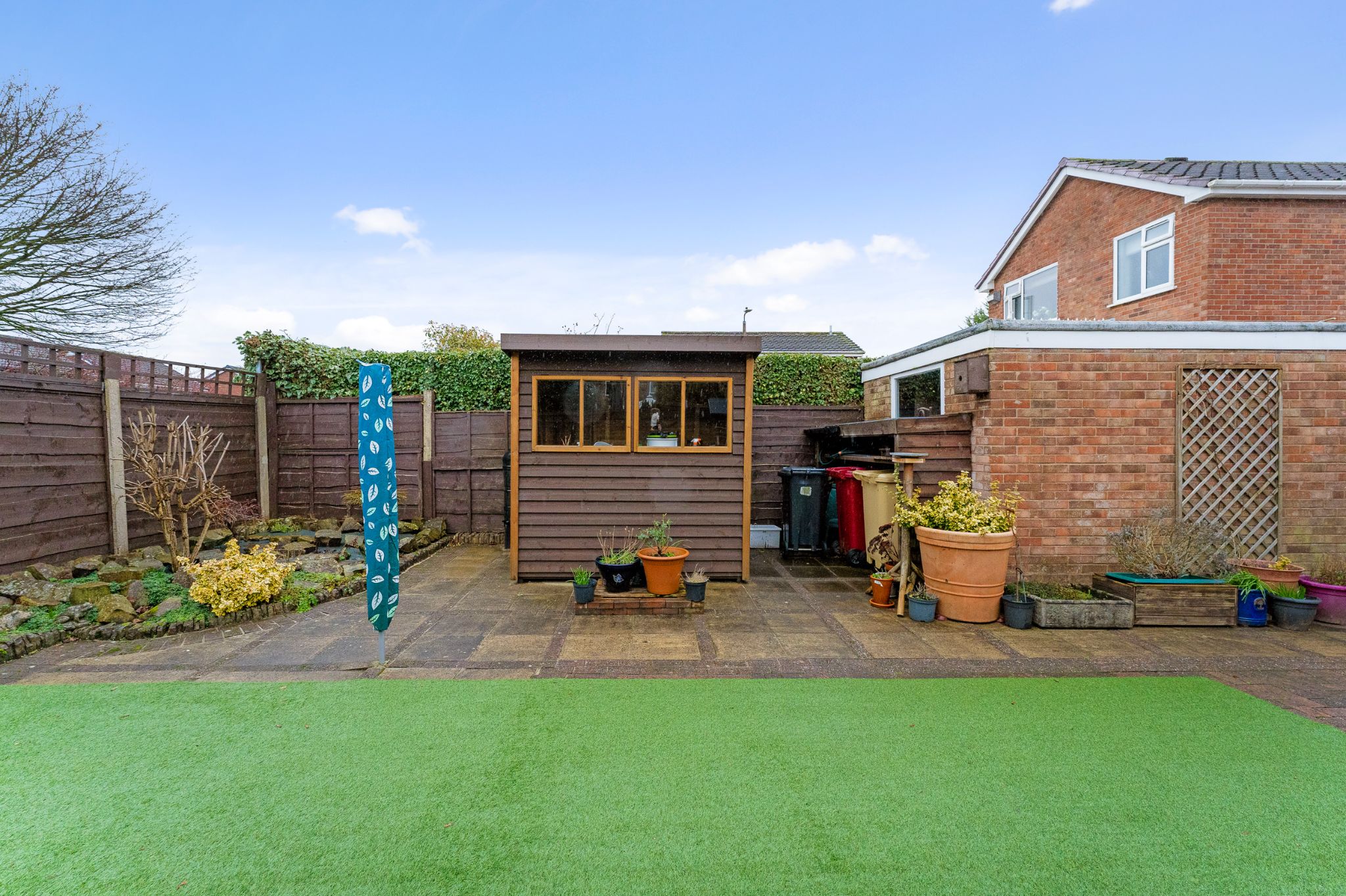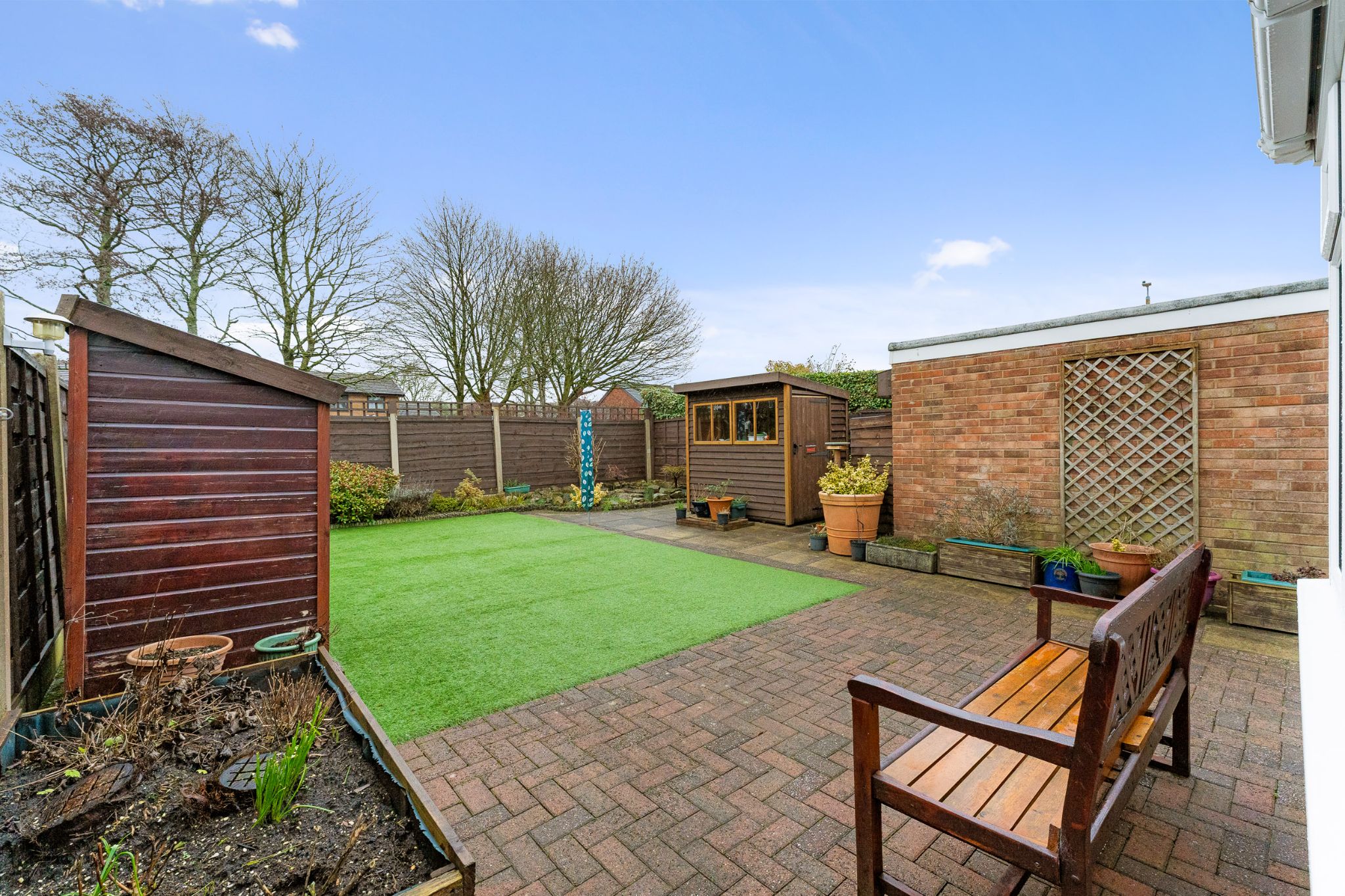 Onto the patio area, ideal for outdoor furniture and entertaining, alongside a low-maintenance, astro-turfed lawn. To each side of the garden there are two useful sheds and planting beds perfect for gardening. A gate provides access to the driveway and garage, which benefits from power, while the driveway offers parking for two to three vehicles. To the front of the property is a generous lawned garden, an inviting space to enjoy during the warmer summer months.
