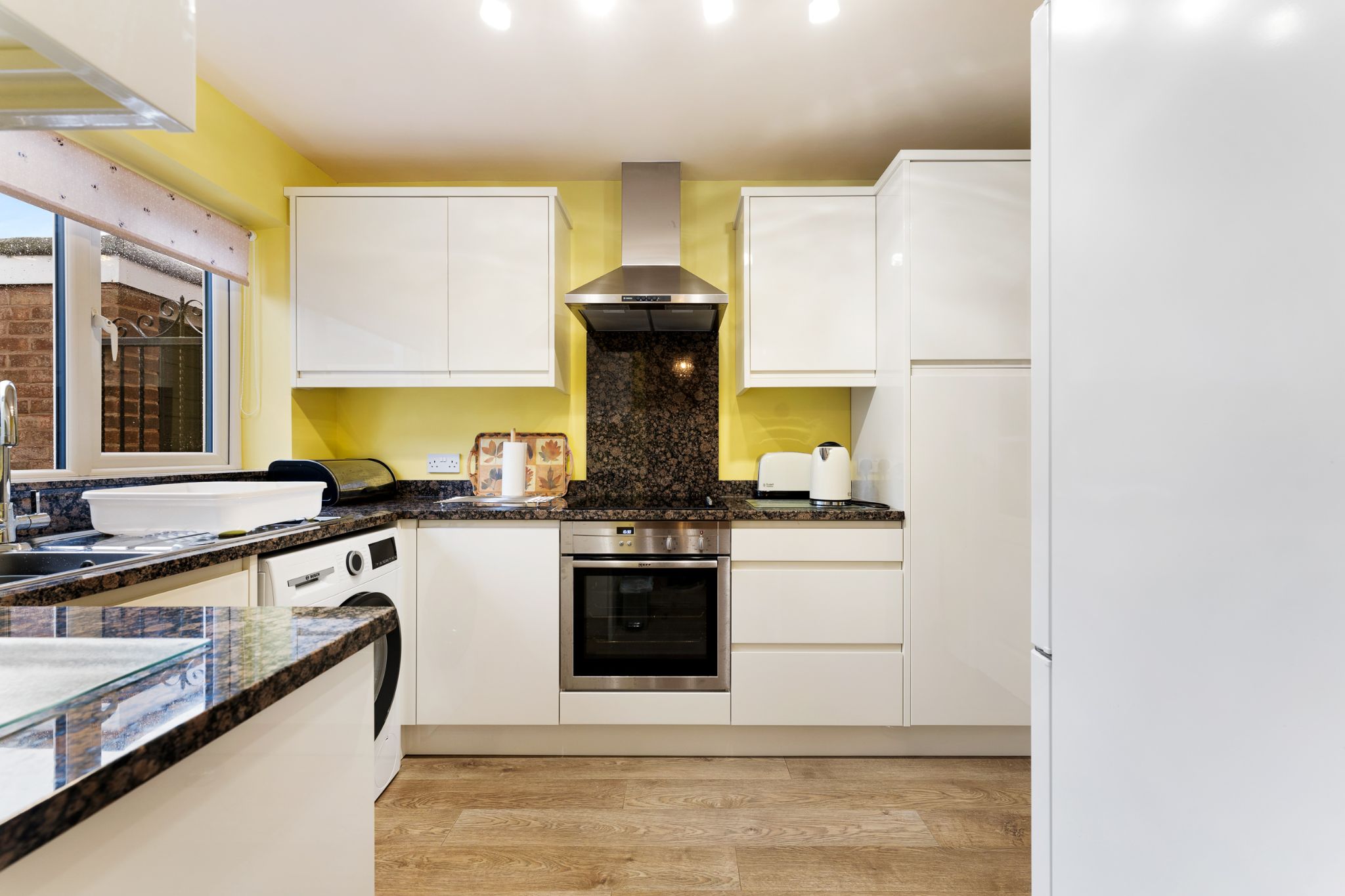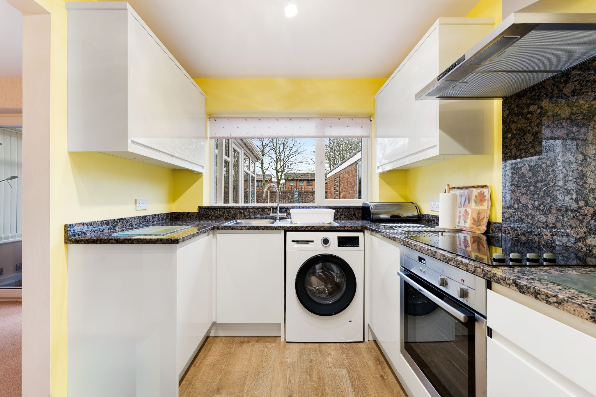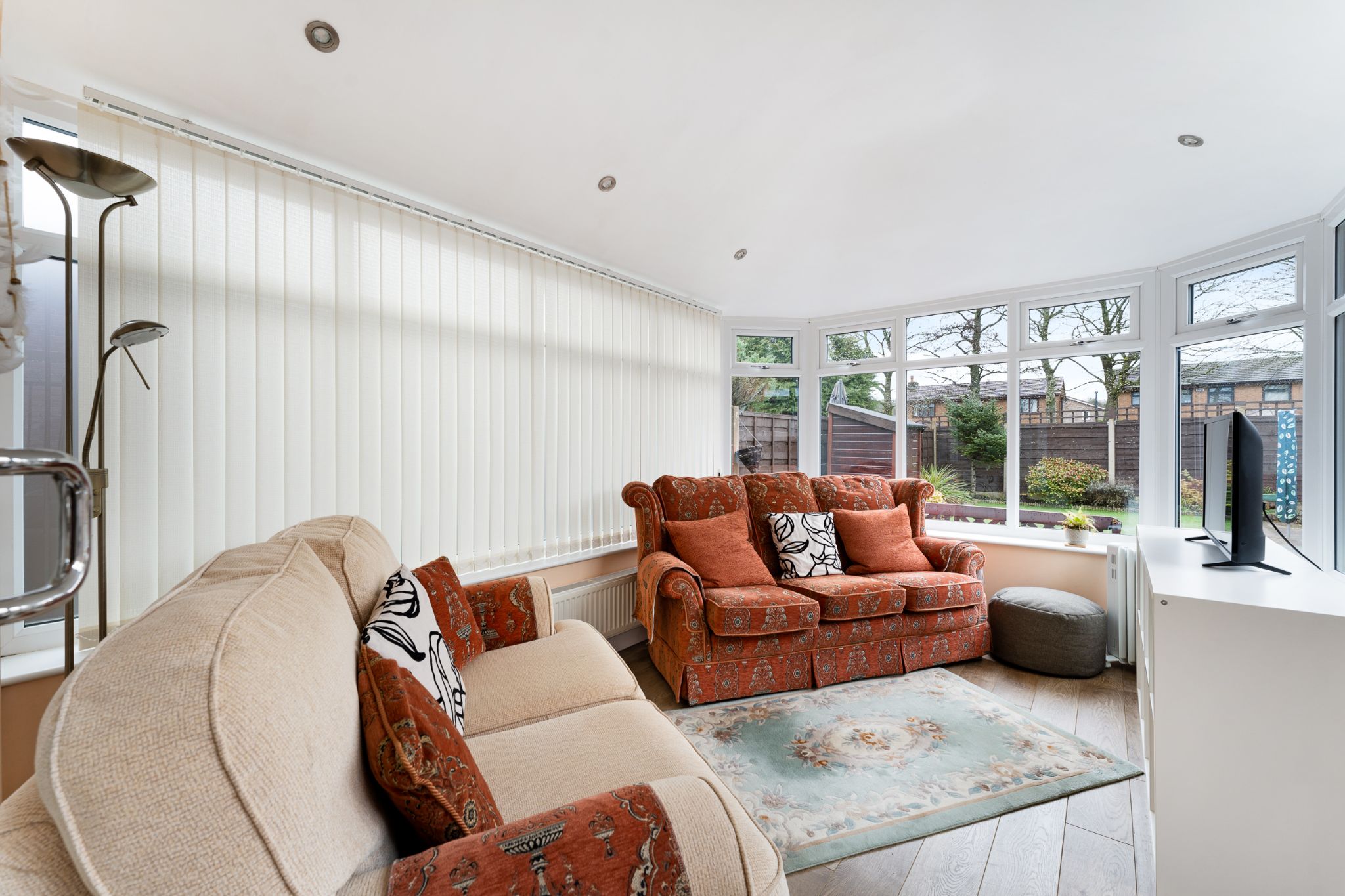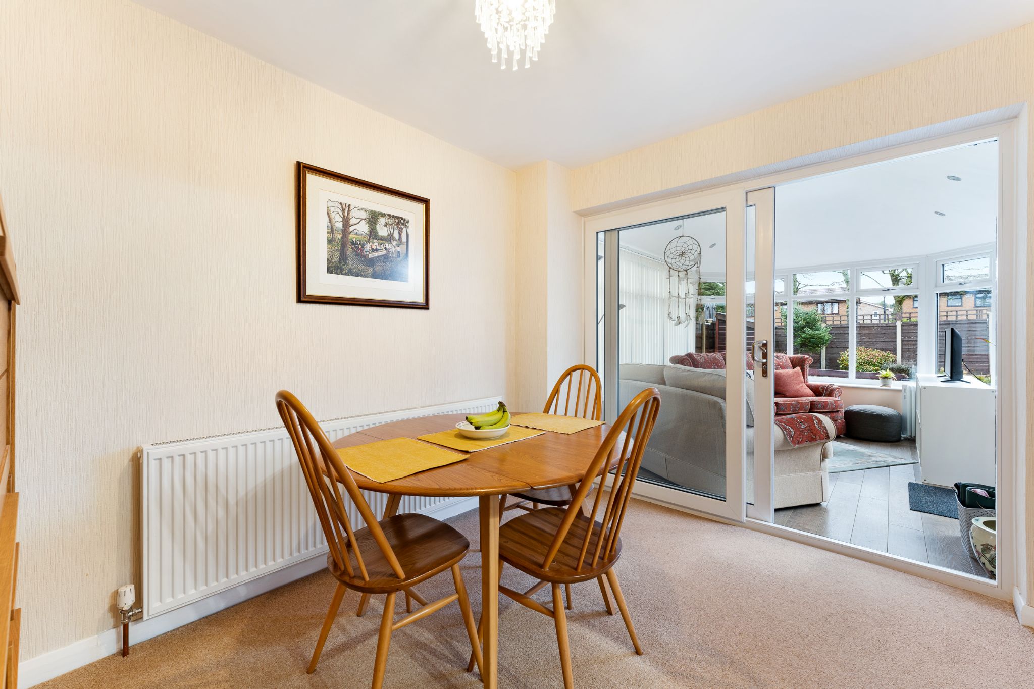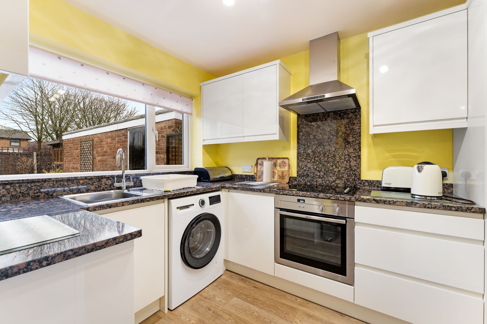 Park on the spacious block-paved driveway and step through the front door into the welcoming entrance hall. To the left is the lounge, featuring a fireplace with electric fire, creating a cosy feel. Returning to the hallway, you’ll find useful under stair storage, while to the right is the kitchen, fitted with cream wall and base units, an integrated oven with electric hob, extractor hood, stainless steel sink, and plumbing for a washing machine. The kitchen leads into the dining room, which can also be accessed from the hallway and opens into the conservatory. The Conservatory benefits from patio doors leading to the rear garden and an insulated roof that keeps the space cooler in summer and warmer in winter. Completing the ground floor is a convenient downstairs WC, fitted with cupboards ideal for coats and shoes, a vanity unit, and a WC with enclosed flush.