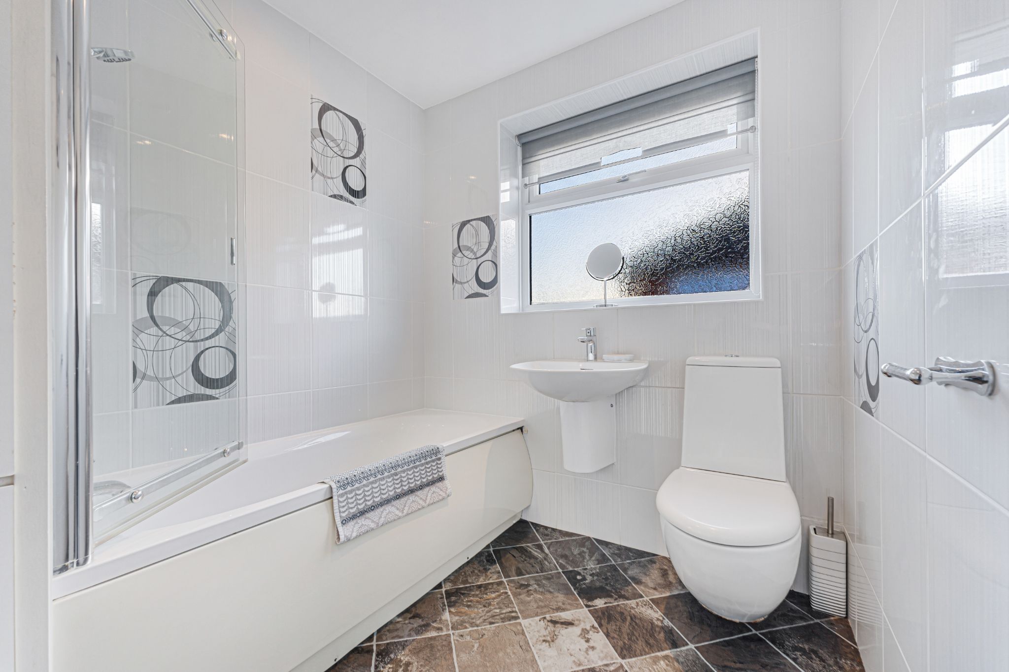 Upstairs, there are three well-proportioned bedrooms, the master a double with fitted wardrobes and outlooks of Winter Hill. Bedroom two is also a good size double with views over the rear garden. Bedroom three is a spacious single positioned to the front of the property with lovely aspects. A neatly presented 3-piece bathroom sits towards the back of the home with fully tiled elevations in contemporary patterns, fitted with a wall hung basin, Wc, chrome heated towel rail and bath with overhead shower. Here you will also find storage that houses the combi boiler.