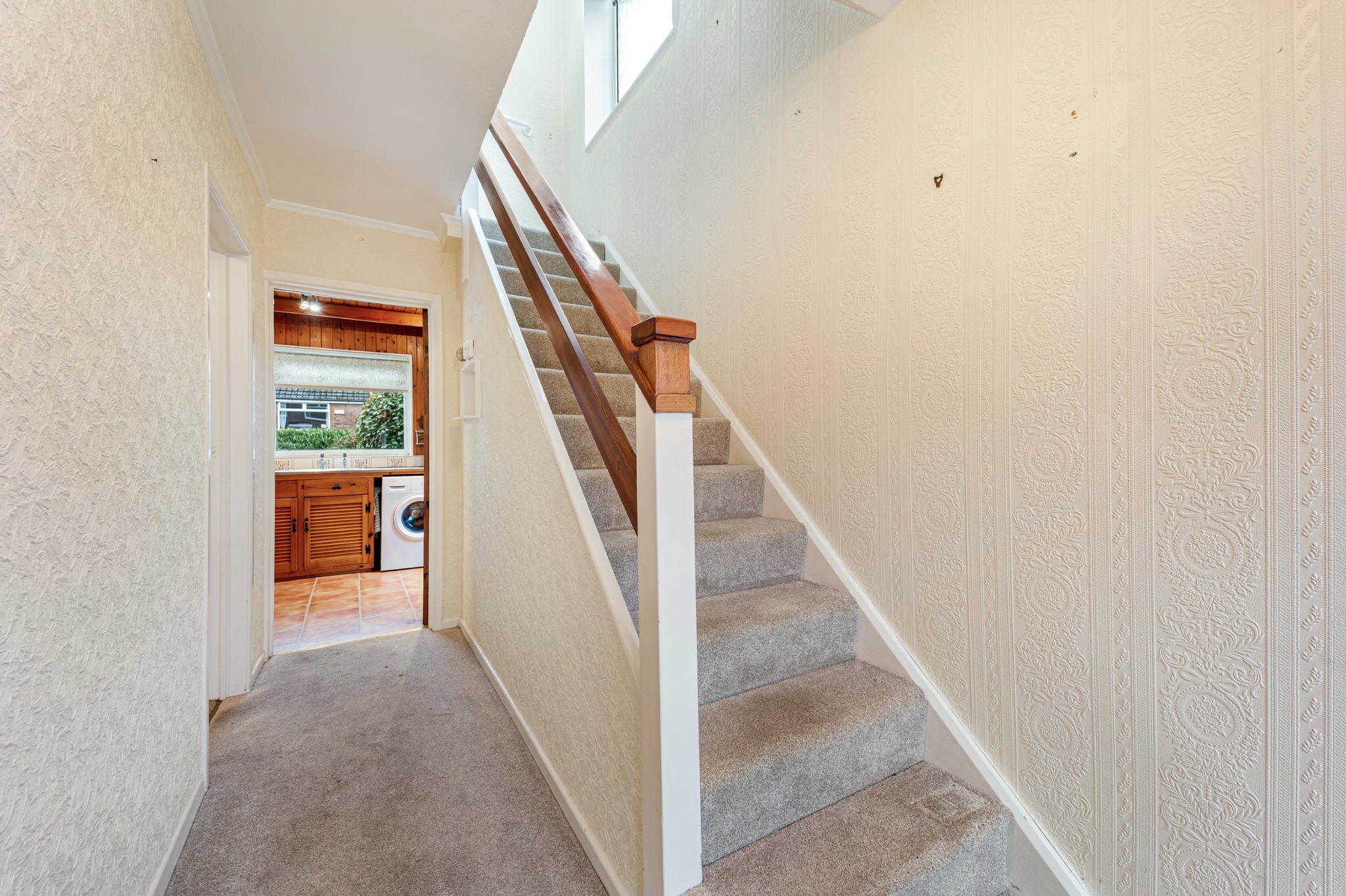 Pull up on the flagged driveway before stepping inside the property. A welcoming entrance hall greets you, stairs lead up to your first floor, but first let’s take a look downstairs.