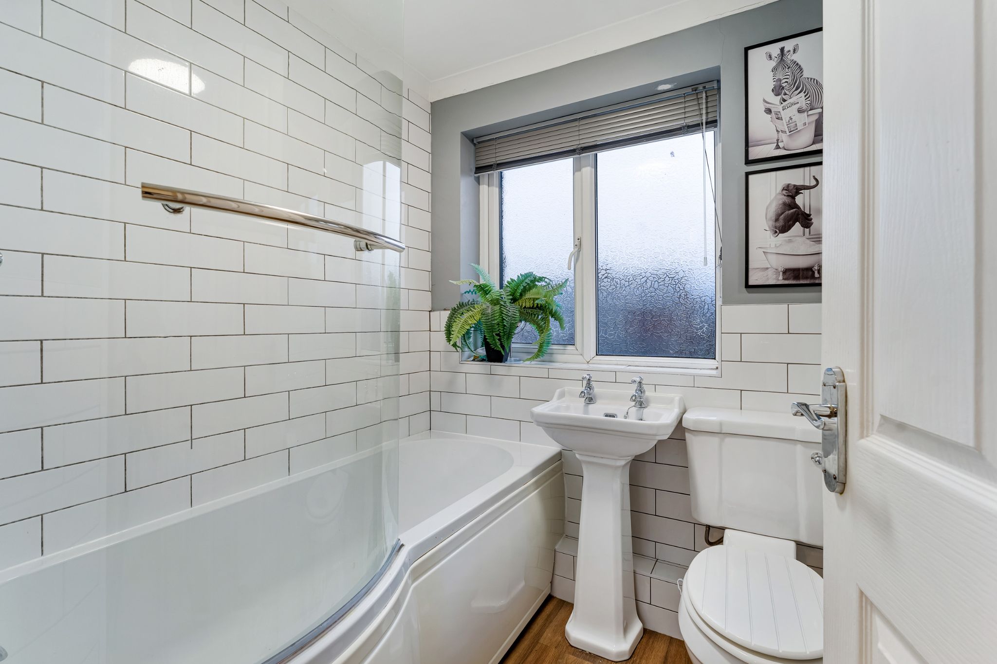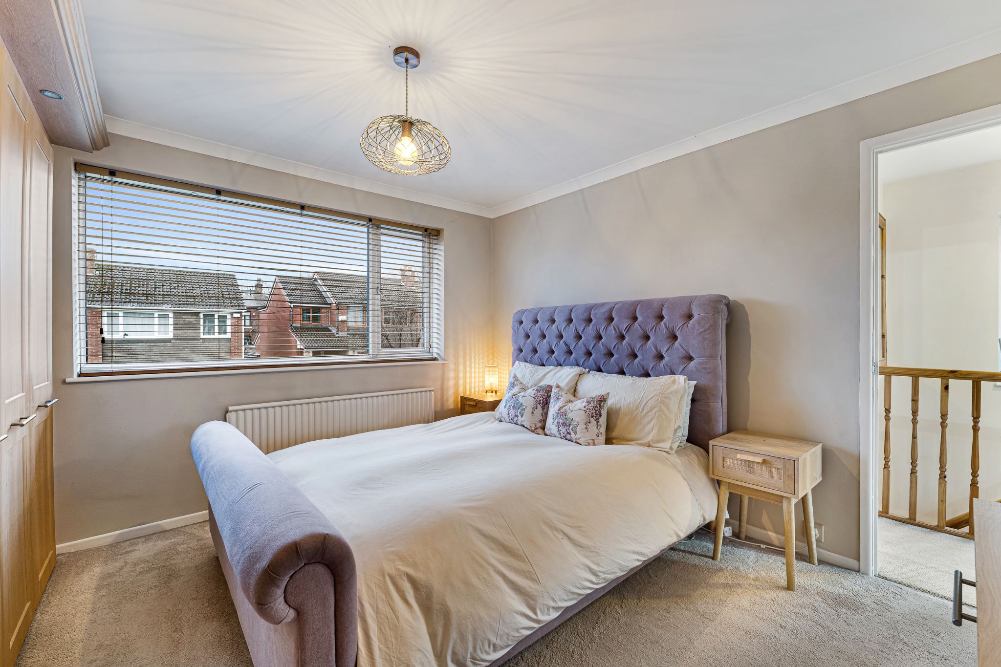 The landing connects you to three bedrooms and a 3 piece bathroom. Bedroom one and two are both generous sized doubles and benefit from from fitted wardrobes to keep the rooms neat and tidy. Bedroom three is a single bedroom and would also make a great home office. The bathroom includes a ‘P’ shaped bath with a rain fall shower above, sink unit and toilet, finished with stylish metro tiling and a chrome heated towel rail.