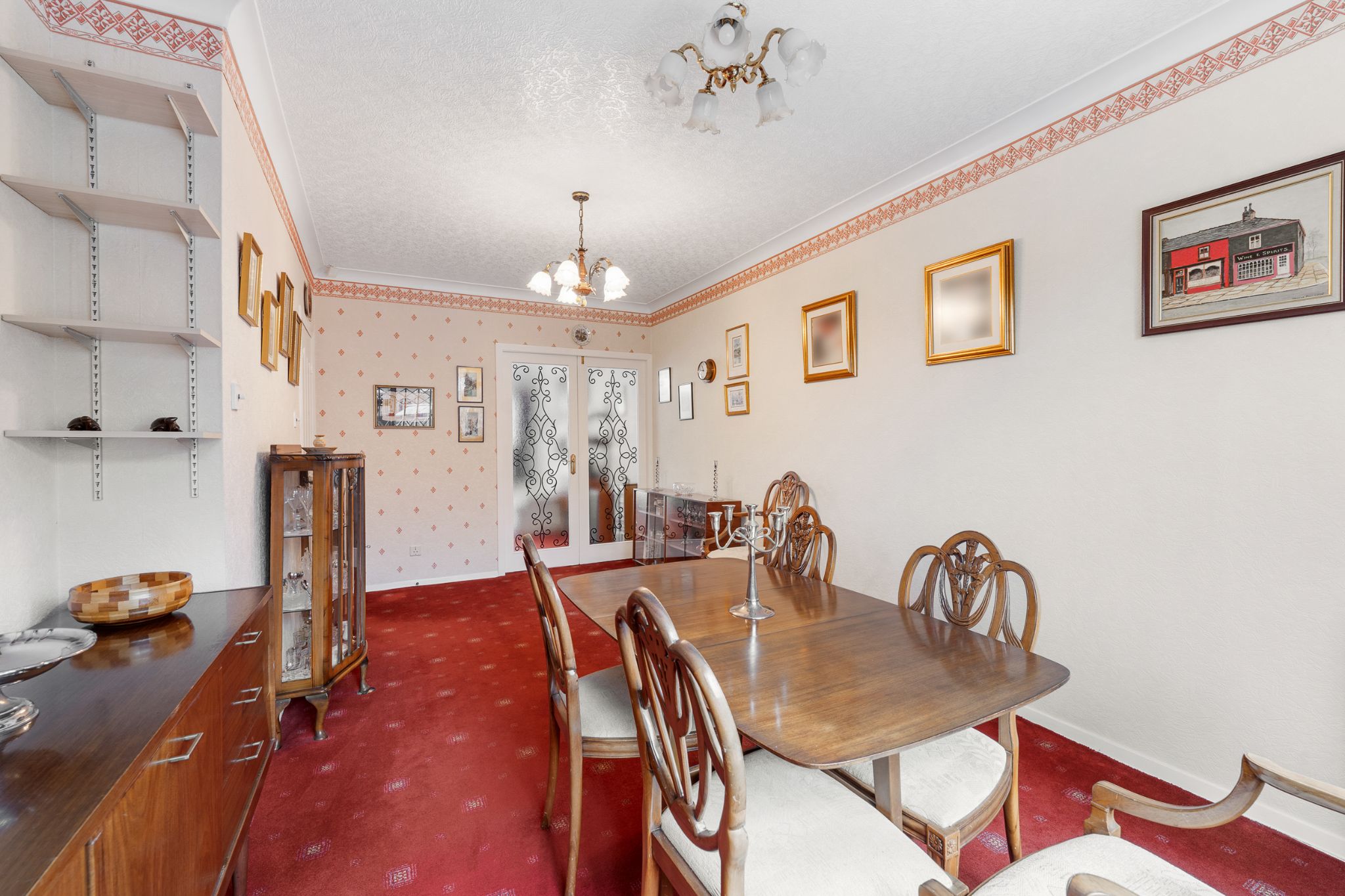Upon parking on the driveway, step through the front door into the welcoming entrance vestibule and kick off your shoes before entering the hallway, which features a handy under-stair storage cupboard. To the left, you will find the lounge, featuring a large front-facing window and a fireplace with a gas fire, creating a cosy focal point. Double doors lead into the extended dining room, a spacious area with views over the rear garden. The kitchen is accessible from both the dining room and entrance hallway and is fitted with wooden wall and base units. Integrated appliances include a gas hob, oven, dishwasher, under-counter fridge, and a stainless-steel sink. Leading off the kitchen there is a utility room, that offers additional storage and space for a fridge freezer and washing machine, with a rear door providing direct access to the garden.