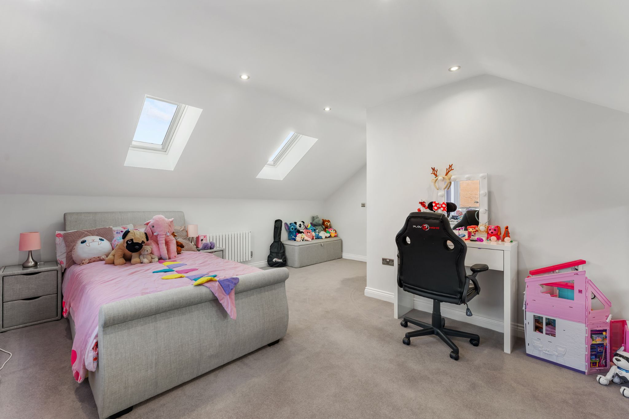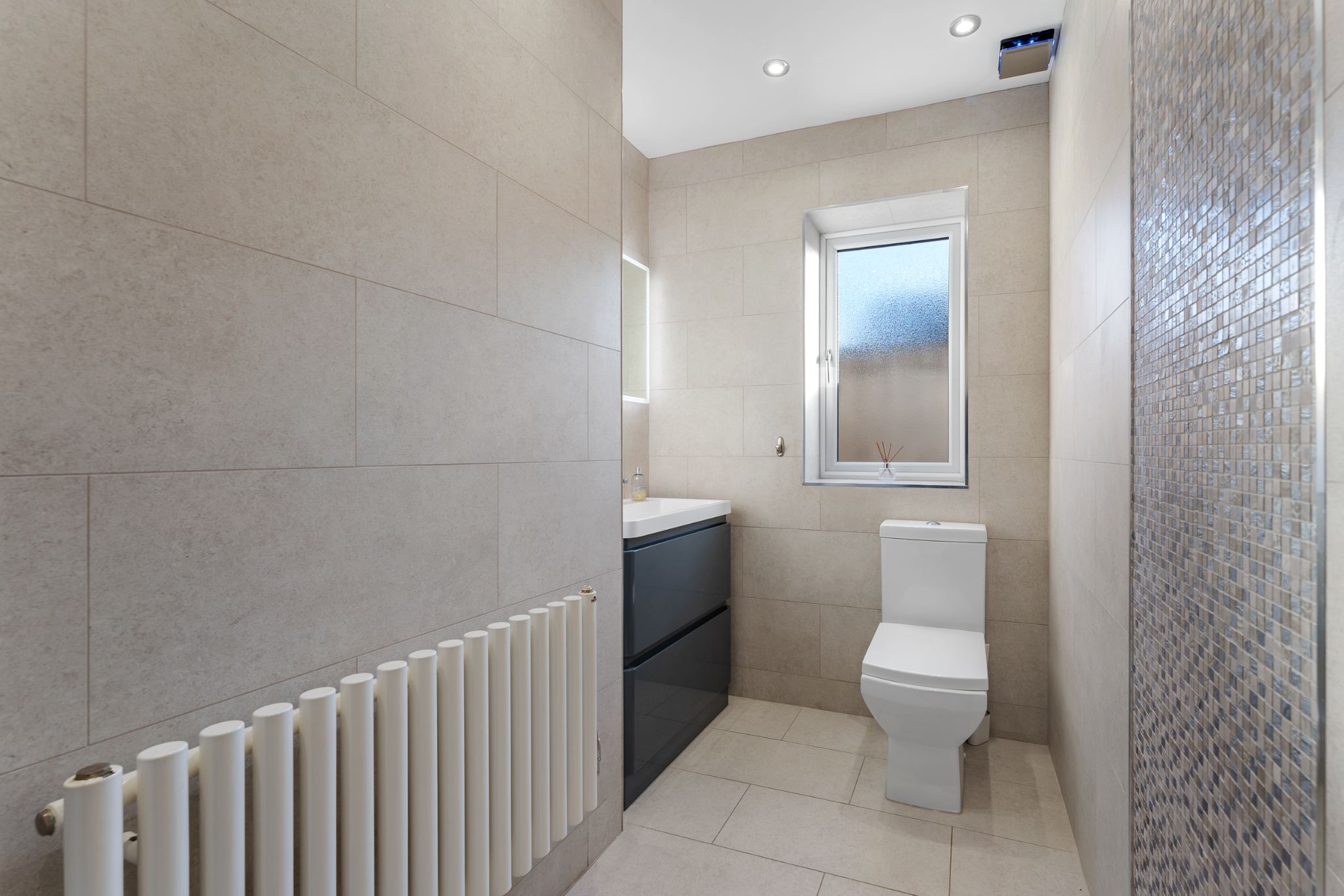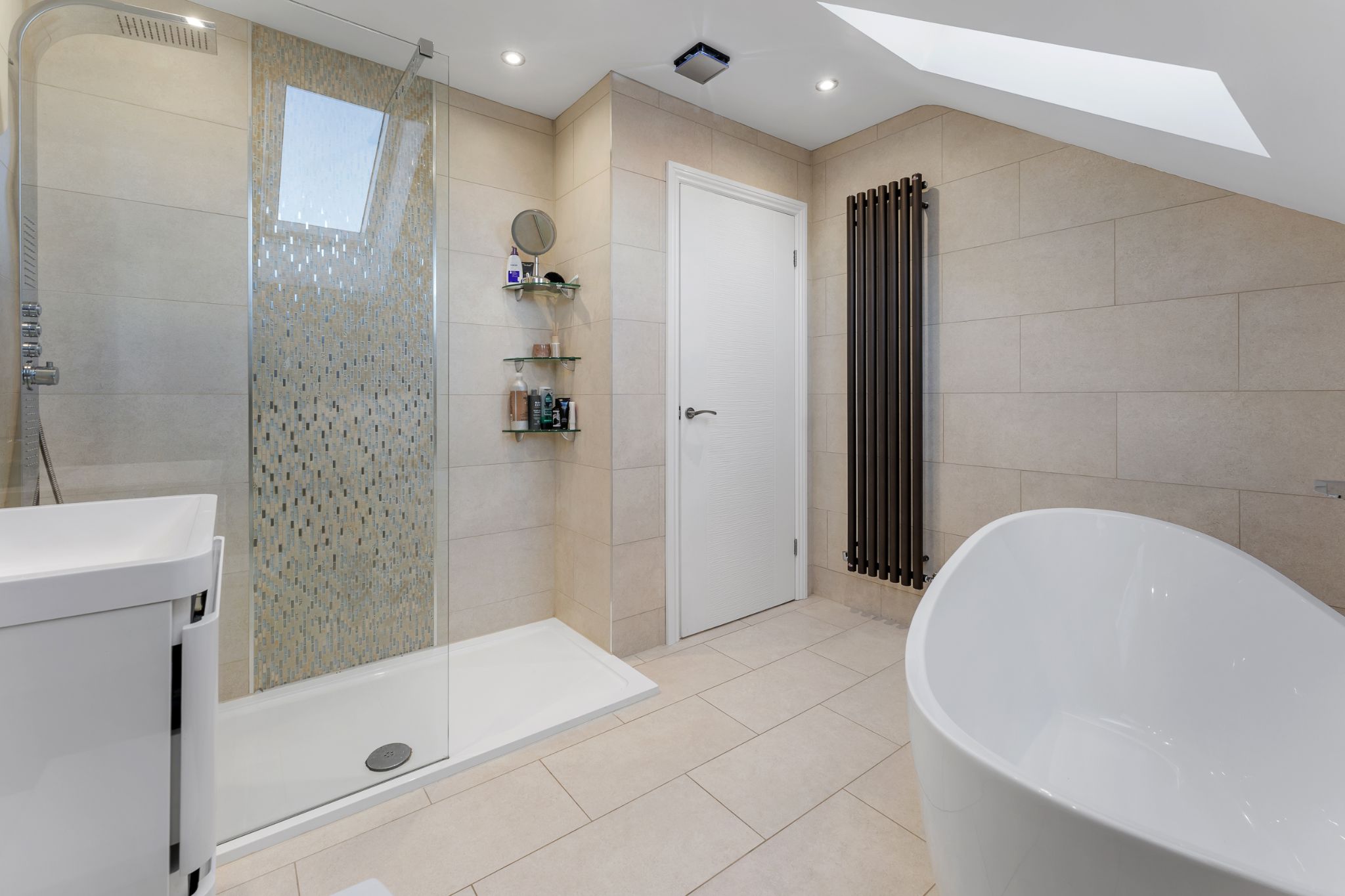 The property boasts four well-proportioned bedrooms. The master bedroom is positioned downstairs and benefits from a stylish en-suite that is fully tiled in neutral tones with a vanity sink, W.C., large walk in shower and a grey storage unit. Bedroom two also on the ground floor is a good size double currently being used as a dressing room with fitted wardrobes and a vanity desk. Upstairs you will find bedrooms three and four both great size doubles, both with in built wardrobes and eaves storage to keep the rooms neat and tidy. The spacious upstairs hallway allows lots of natural light to pour in from the Velux windows and connects you into the 4-piece family bathroom fully tiled in calming, earthy tones featuring a walk-in shower, vanity sink, W.C. and a bath.